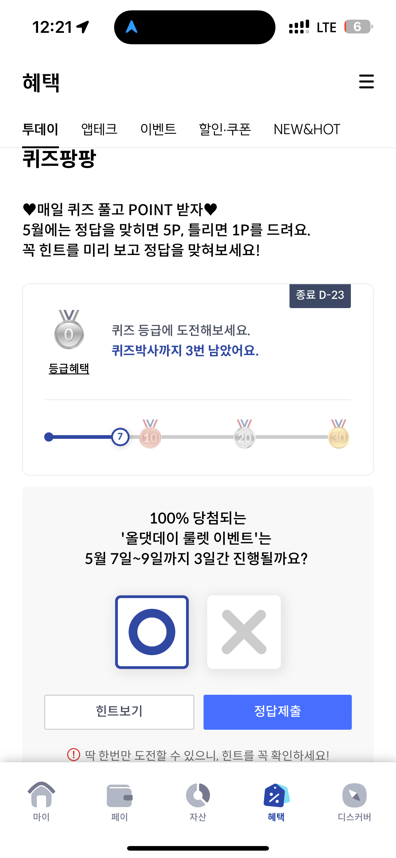 신한카드 퀴즈팡팡 정답은 O 입니다