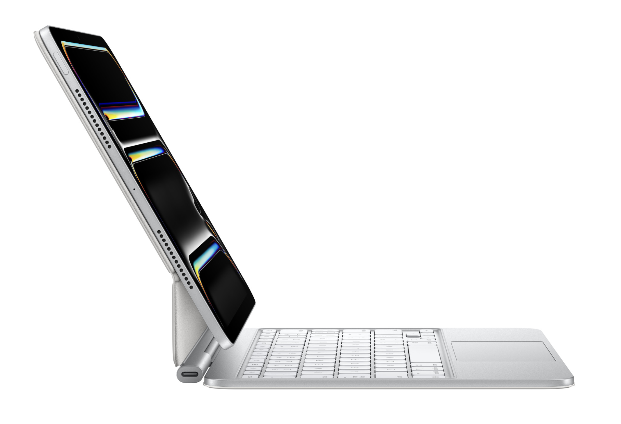 애플 M4 아이패드 프로는 얇고 가벼운 디자인의 새로운 매직키보드가 적용되었습니다. 플로팅 디자인을 볼 수 있고 화면 밝기, 음량 제어 등 다양한 기능 키 열을 상단에 적용해 컨트롤적인 개선을 보여줬습니다. 그리고 알루미늄 팜레스트와 확장된 크기에 햅틱 피드백으로 맥북 같은 사용성을 만날 수 있게 했습니다. 스페이스 블랙 알루미늄 팜레스트를 갖춘 블랙 색상과 실버 알루미늄 팜레스트를 갖춘 화이트 색상이 있습니다.