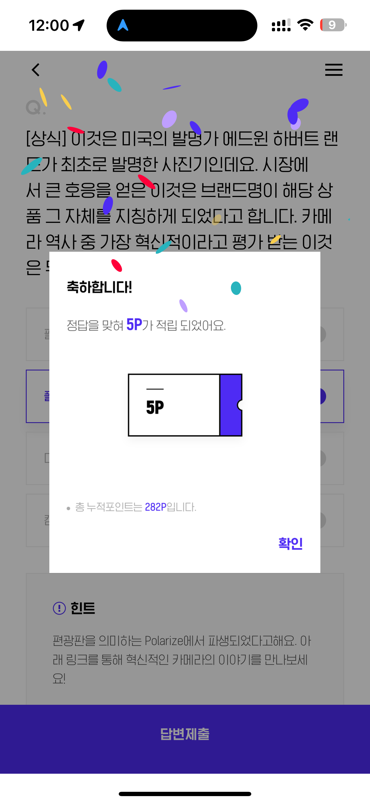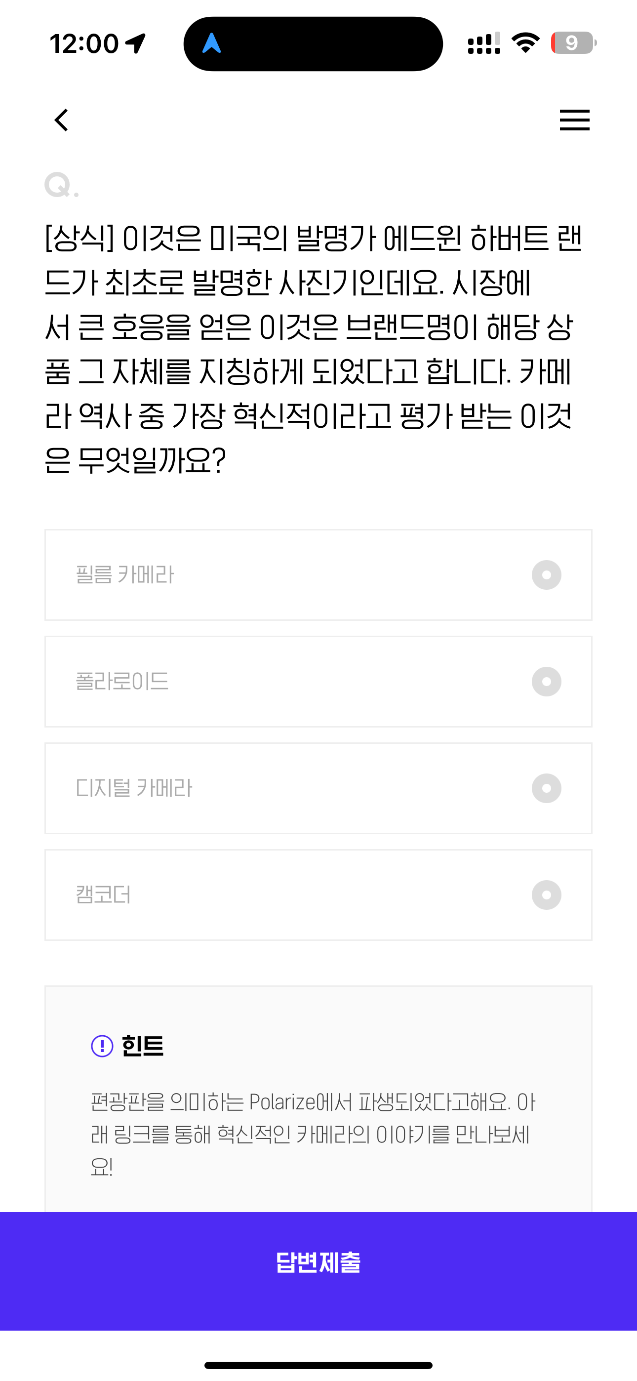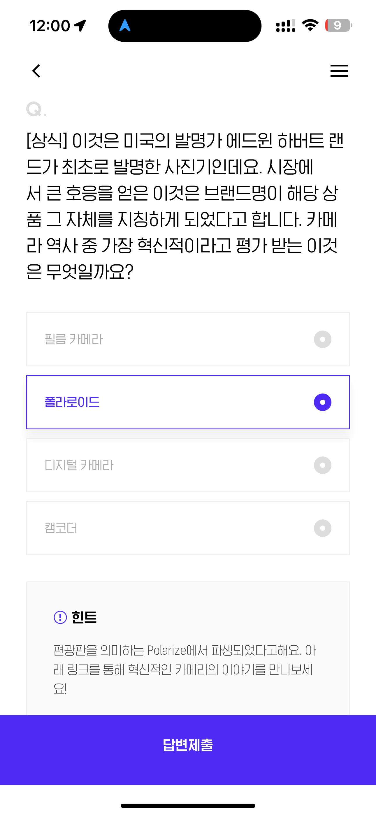 H포인트 퀴즈 정답은 폴라로이드 입니다