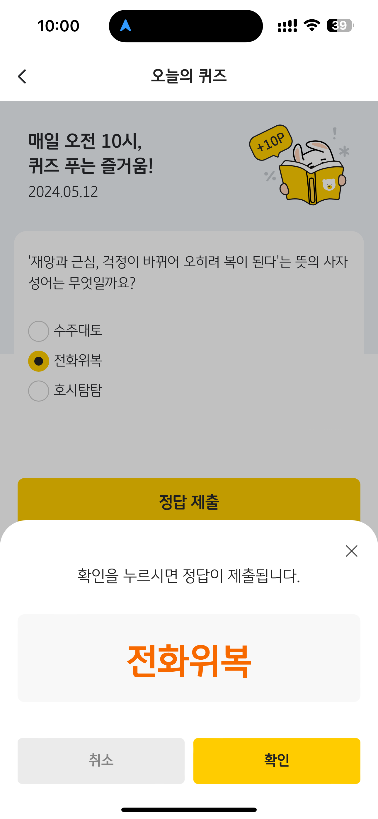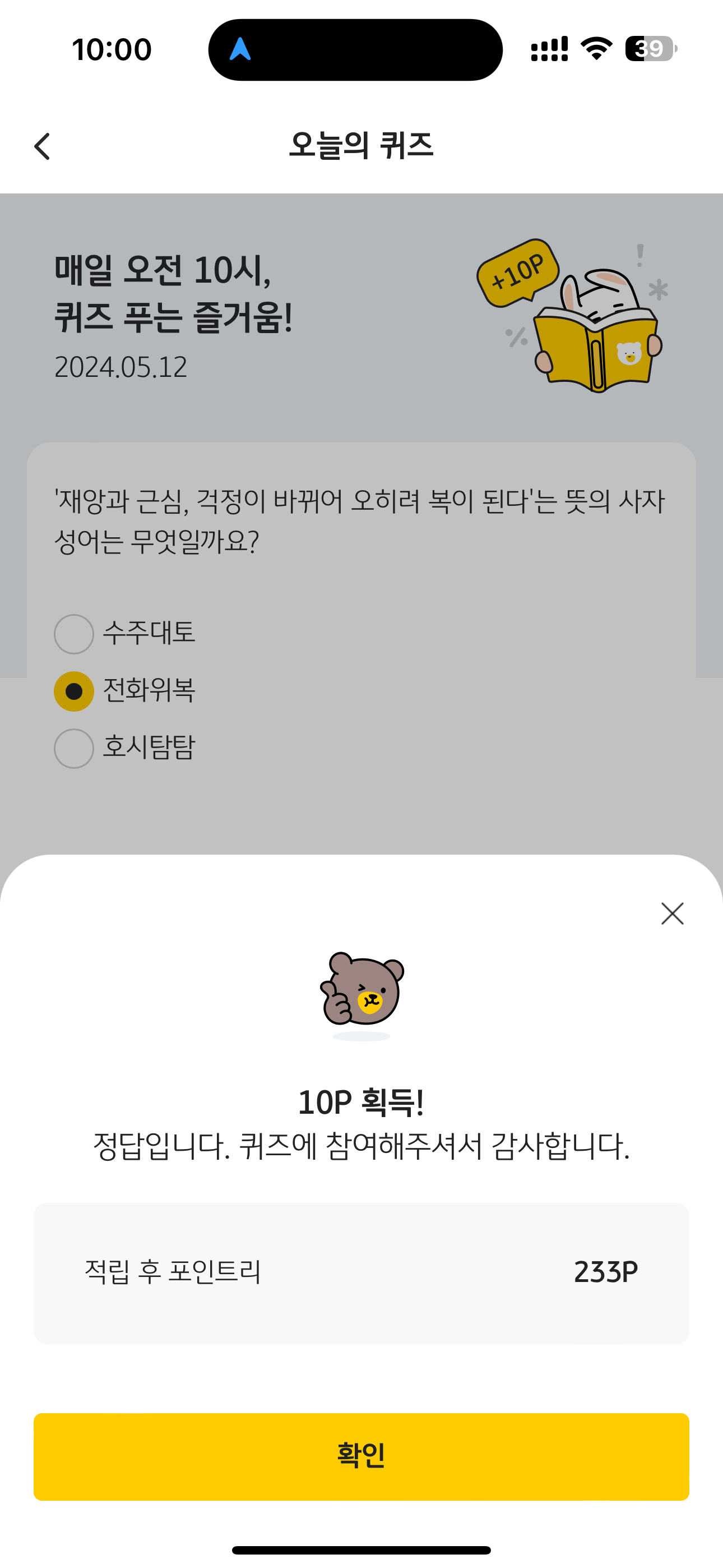 KB Pay 오늘의 퀴즈 정답은 전화위복 입니다