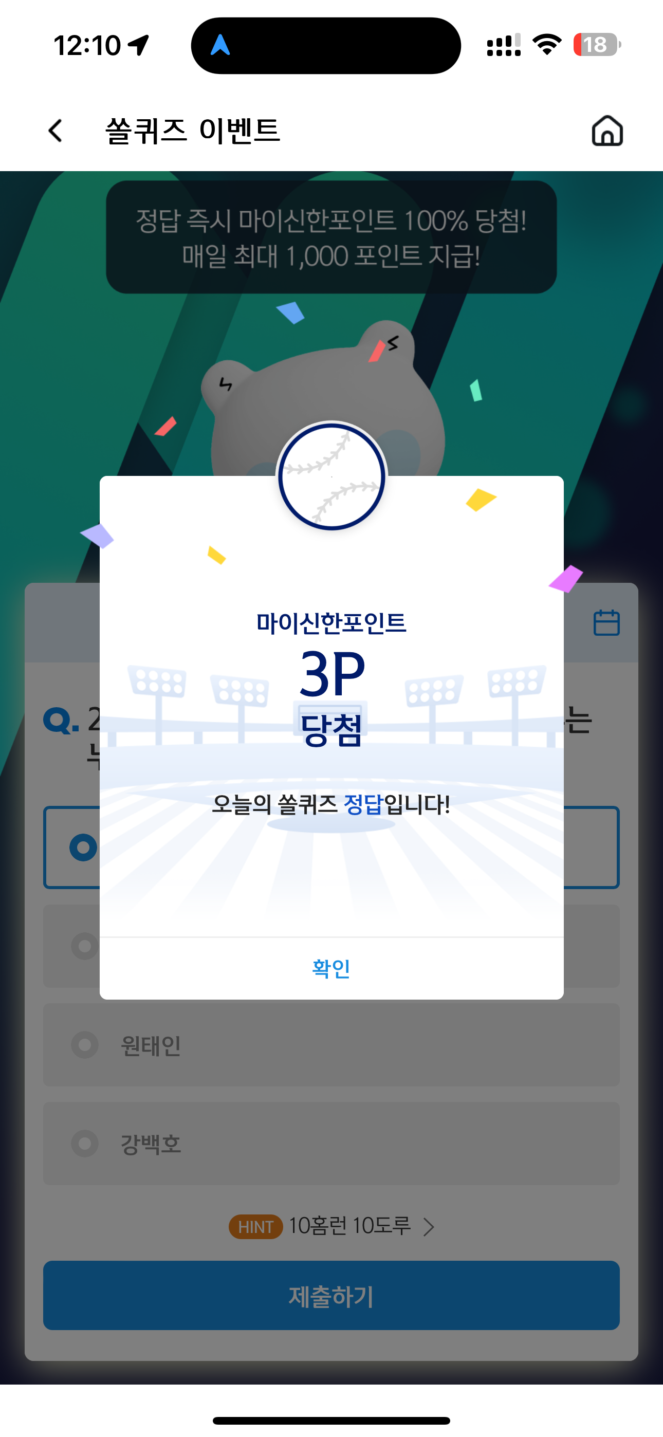 신한 슈퍼SOL 야구/상식 쏠퀴즈 정답은 김도영 입니다