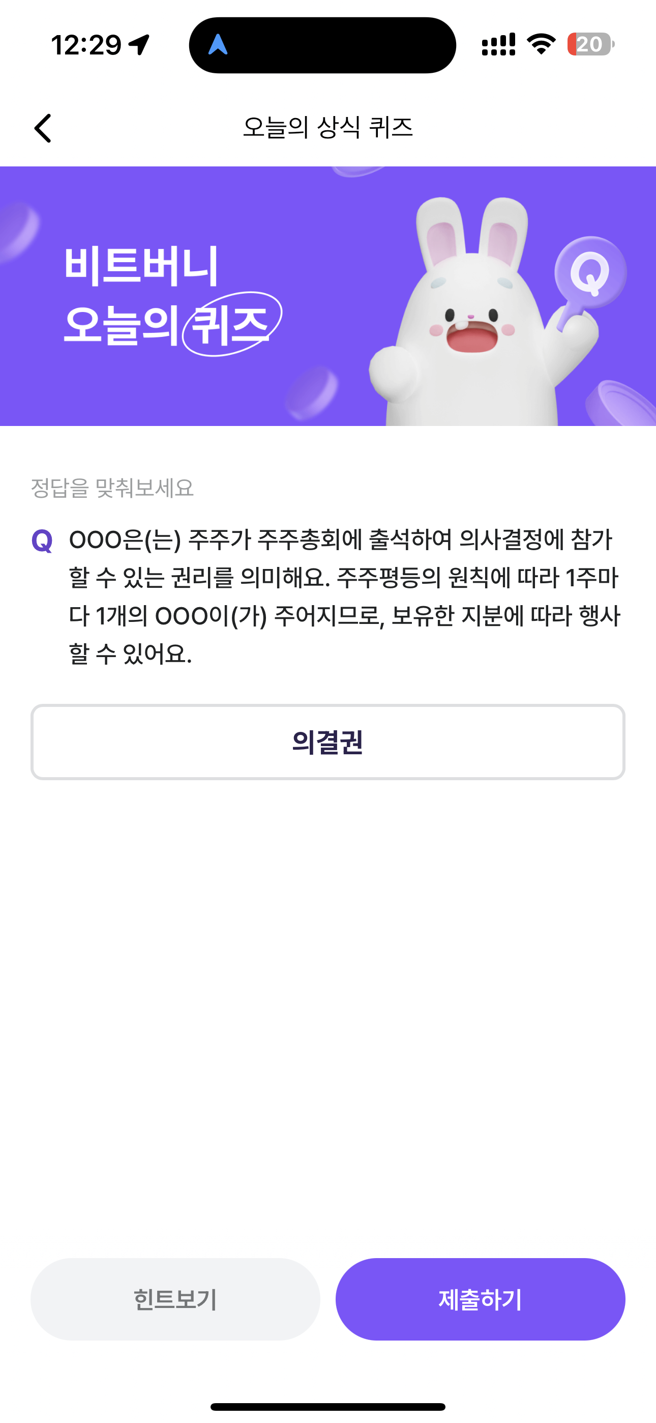 비트버니 오늘의 퀴즈 정답은 의결권 입니다