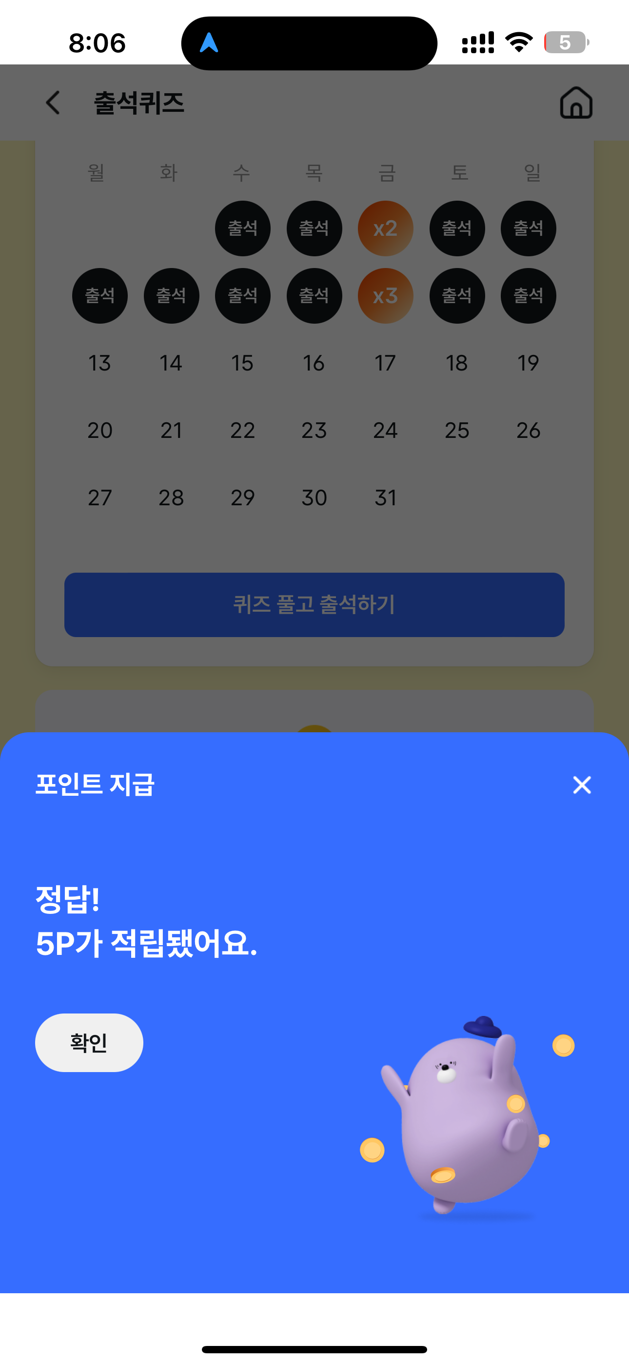 5P를 받았습니다. 포인트는 현금 전환 가능하니 꼭 받으시고요. 여러분의 재테크를 응원합니다
