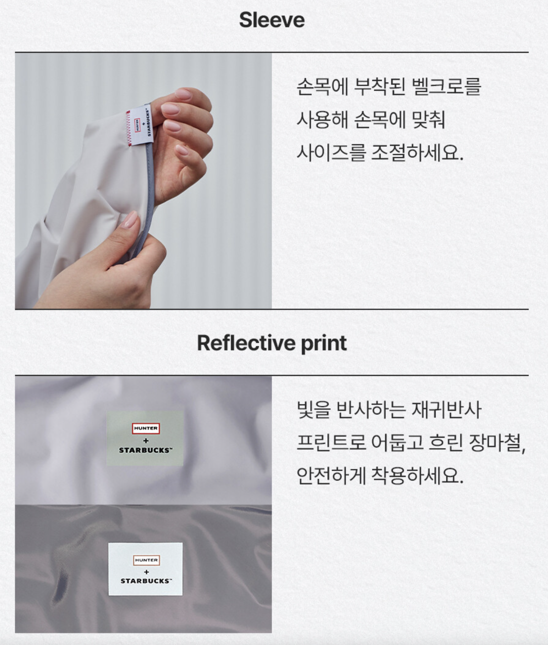 2024년 여름 스타벅스 프리퀀시 스타벅스 라이트 레인 판초는 HUNTER 브랜드와 함께 준비된 제품으로 비올 때 입는 우의 입니다. 색상은 아이보리, 그레이 두 가지 색상이 있고