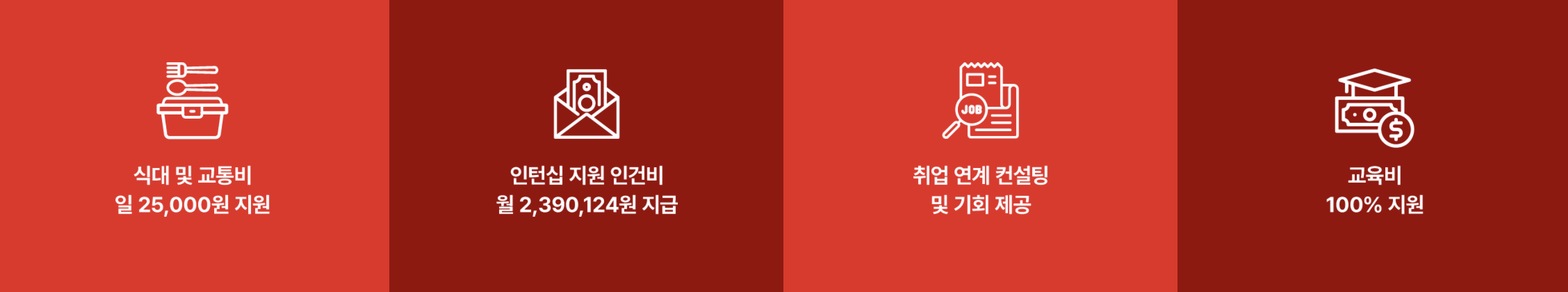 서울시 뉴딜일자리 사업 생성형 AI활용 언리얼 기반 XR콘텐츠 개발자 과정의 교육 혜택을 보면 정말 놀랍다는 말밖에 안나옵니다. 전문 게임 개발자 학원을 통해 양질의 교육을 제공하는데 교육비를 100% 지원하고 여기에 추가로 매일 식대 및 교통비로 25,000원을 지급하고 인턴십 지원 인건비 월 2,390,124원 지급, 취업 연계 컨설팅 및 기회제공까지 해줍니다.