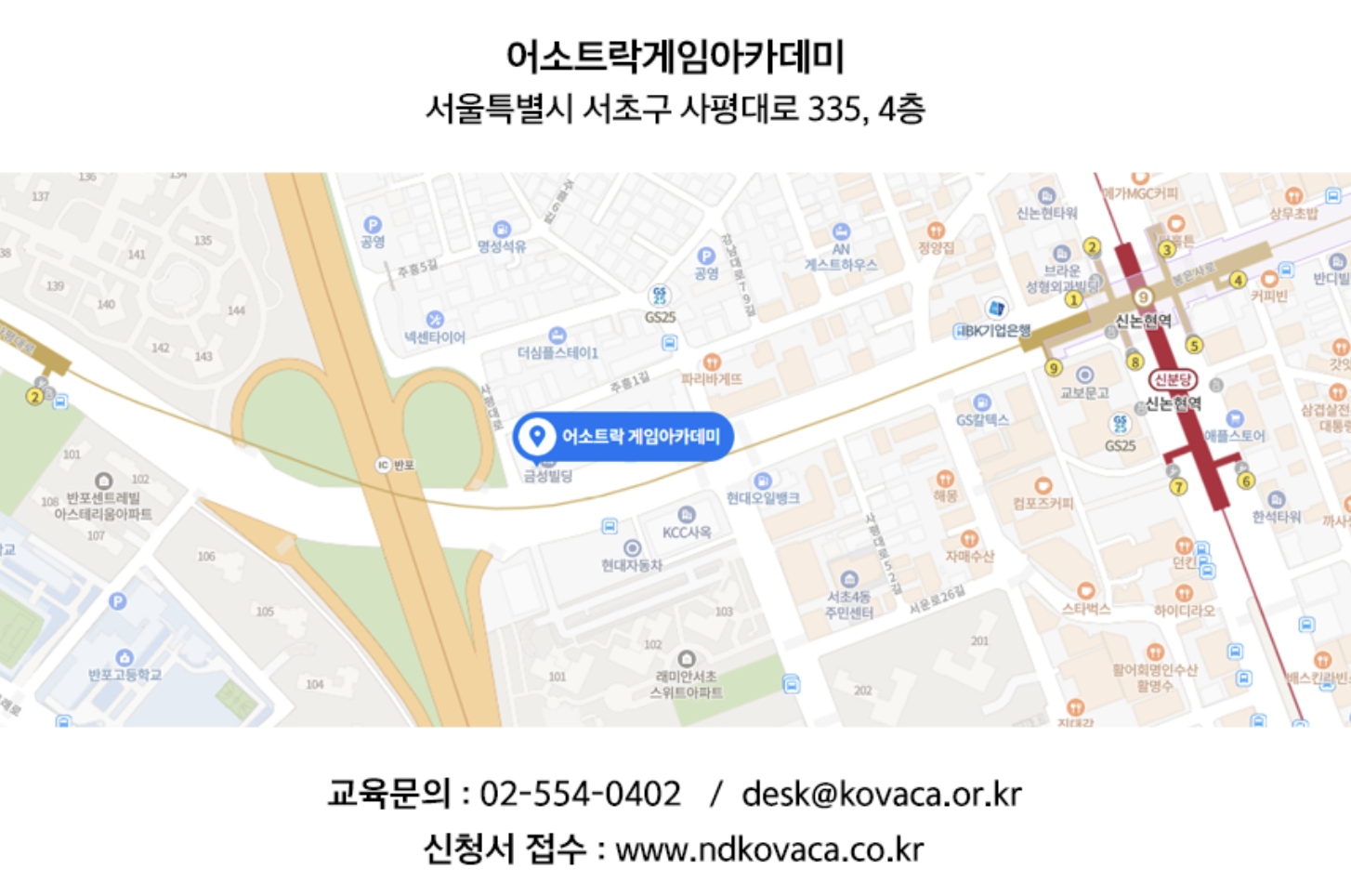 교육 장소는 전문 게임 개발자 학원인 어소트락게임아카데미에서 진행됩니다. 무료로 게임 개발자 학원에서 진행되는 프로그램을 그대로 받을 수 있다고 보시면 됩니다.