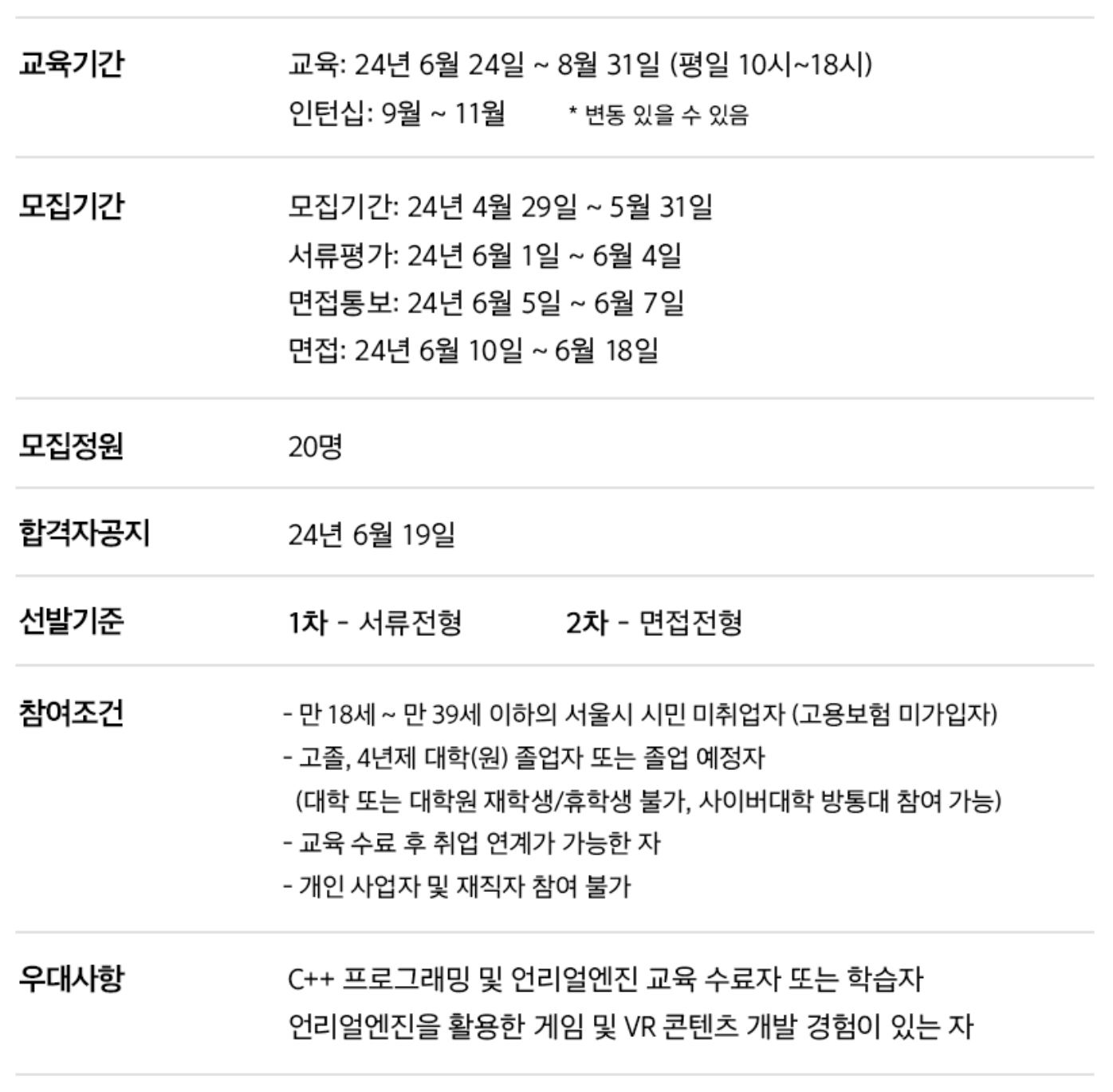 서울시 뉴딜일자리 사업 생성형 AI활용 언리얼 기반 XR콘텐츠 개발자 과정 모집 내용