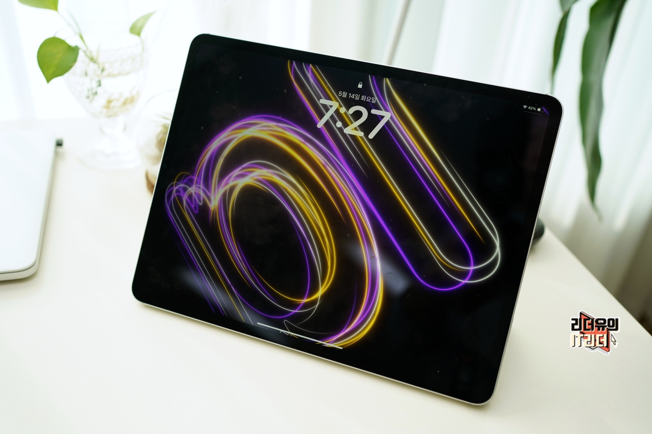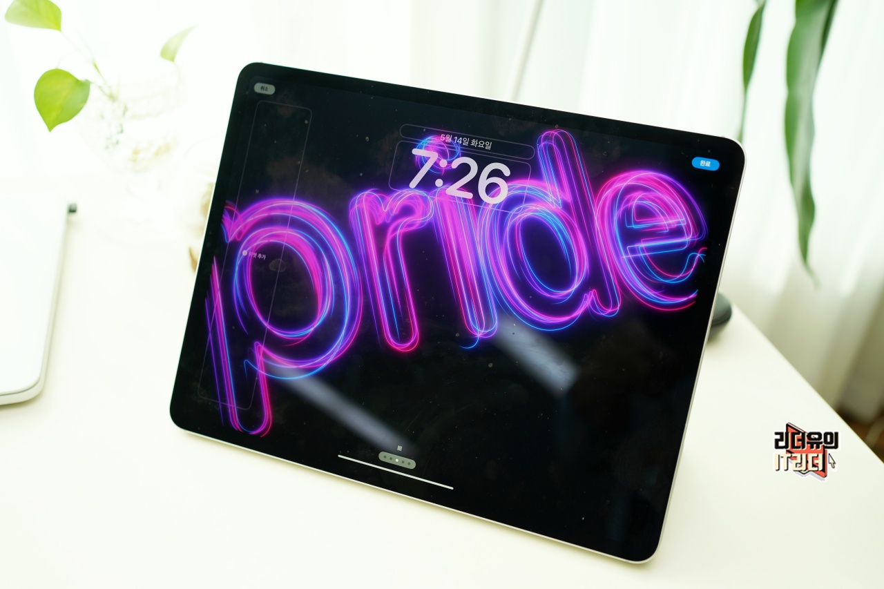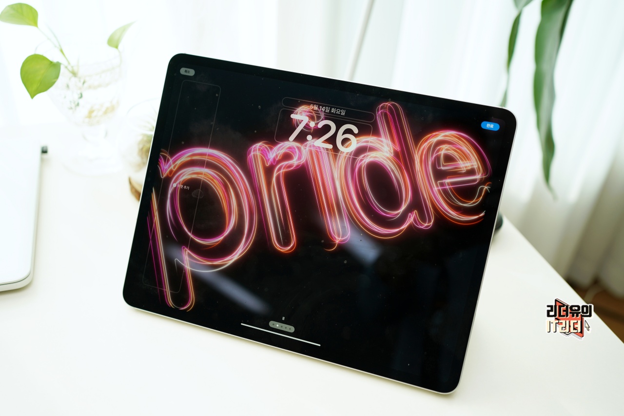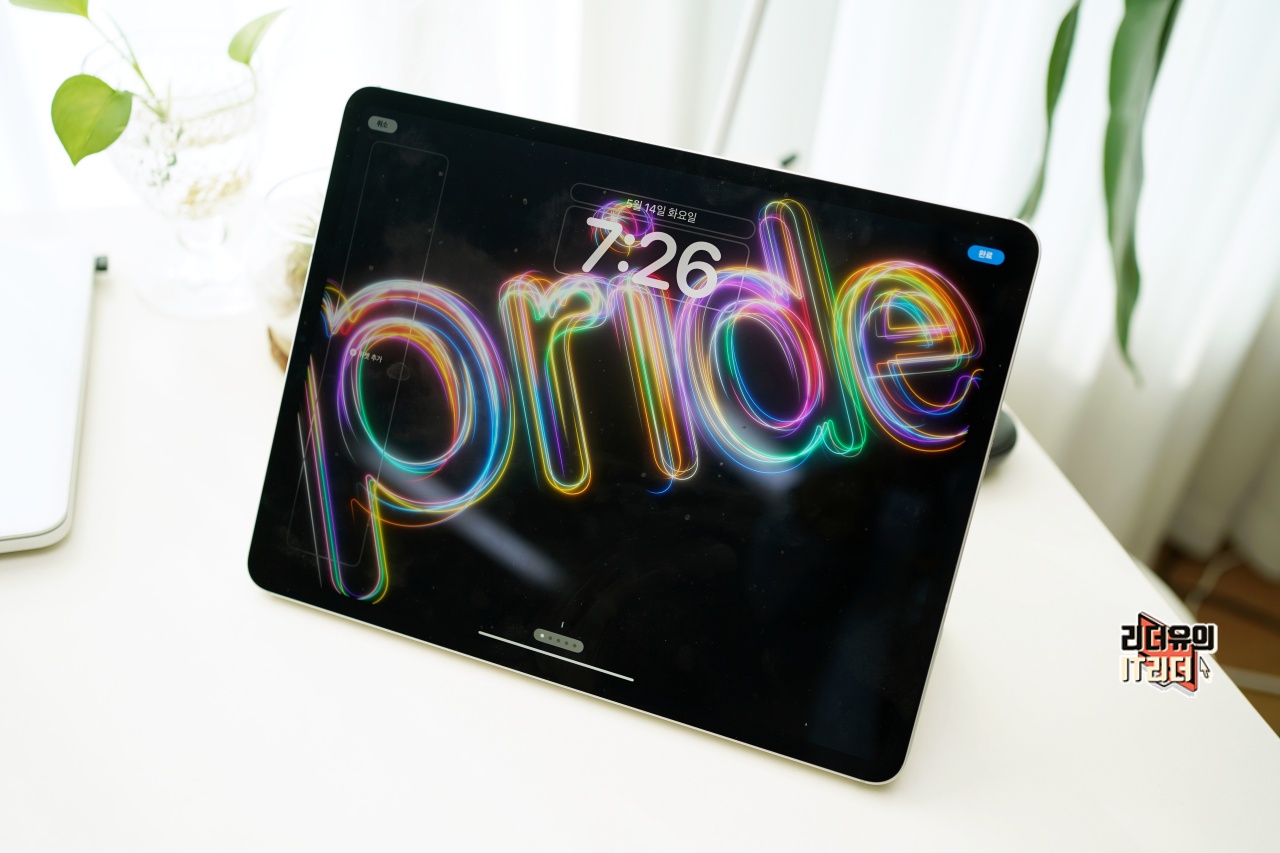 아이패드도 화면이 꺼졌다 켜졌다 할때마다 새로운 스타일의 프라이드 잠금화면을 볼 수 있습니다.