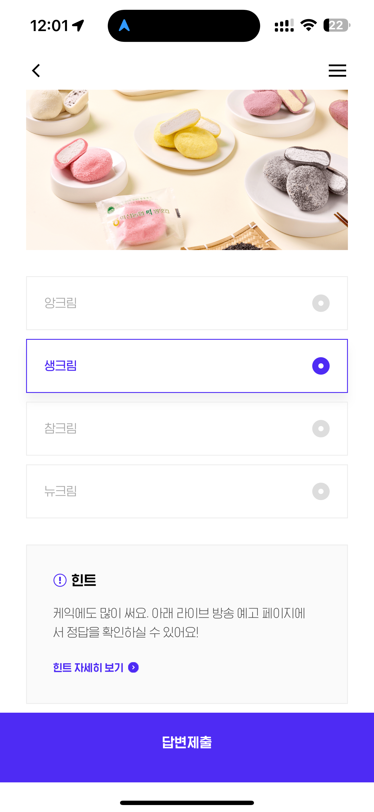 H포인트 퀴즈 정답은 생크림 입니다