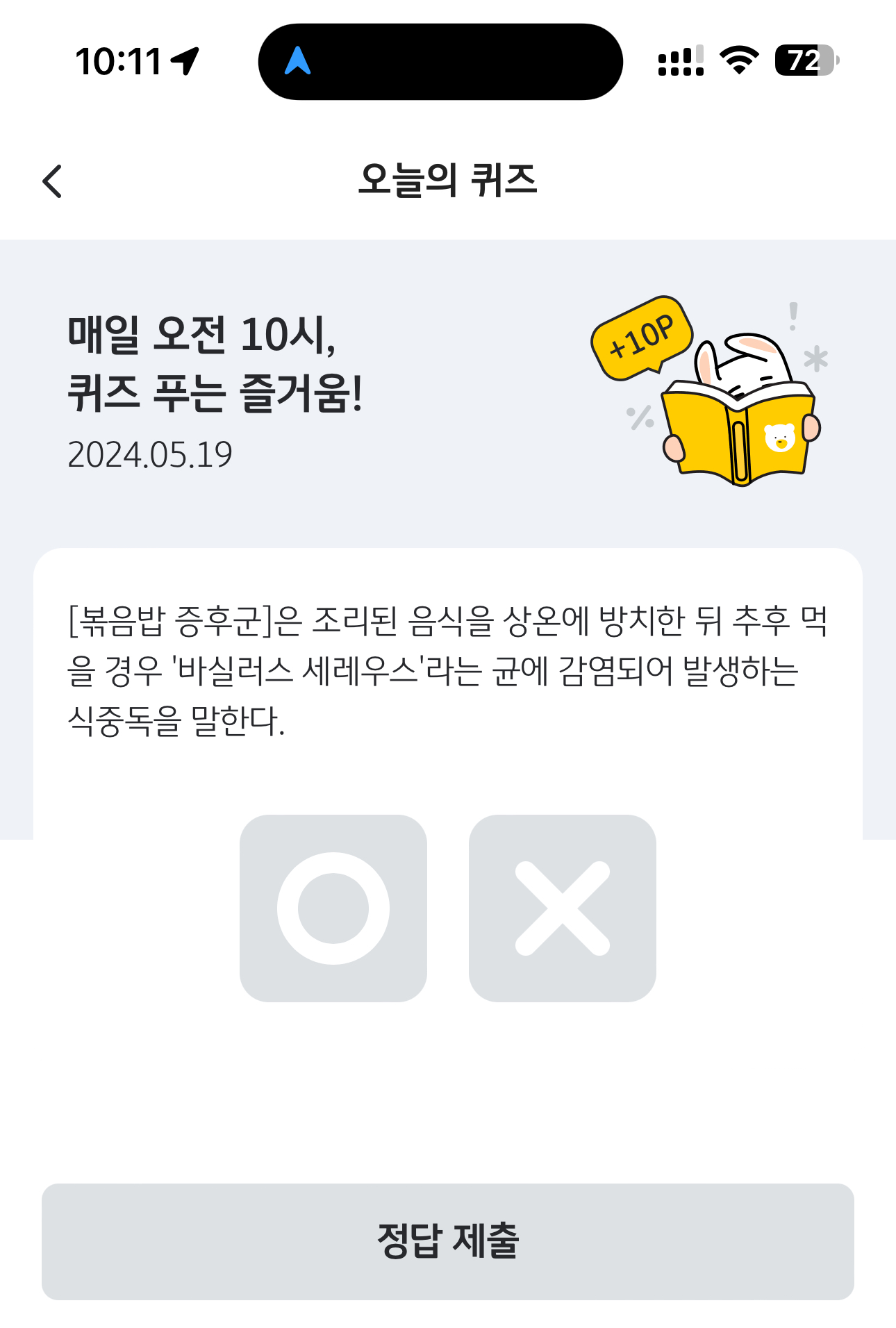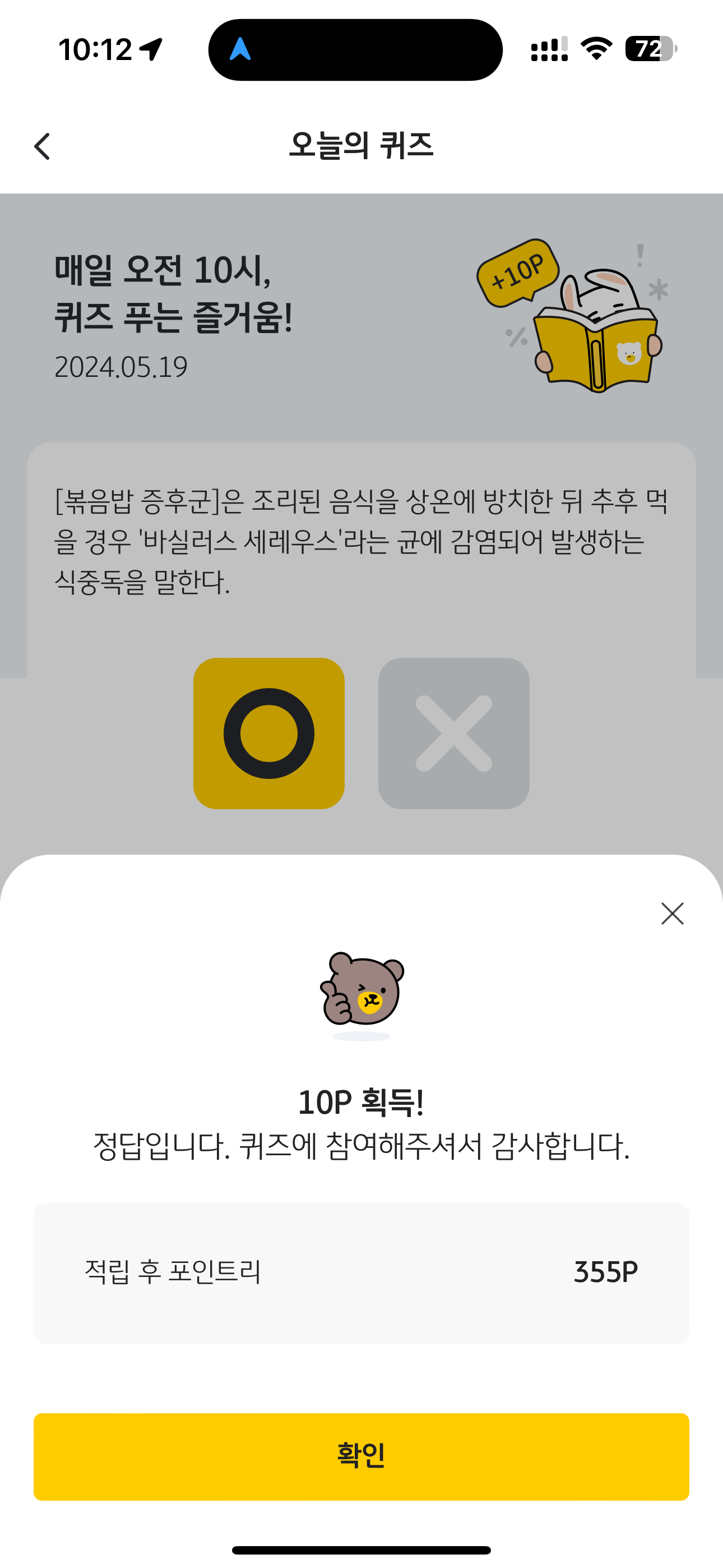 KB Pay 오늘의 퀴즈 정답은 O 입니다