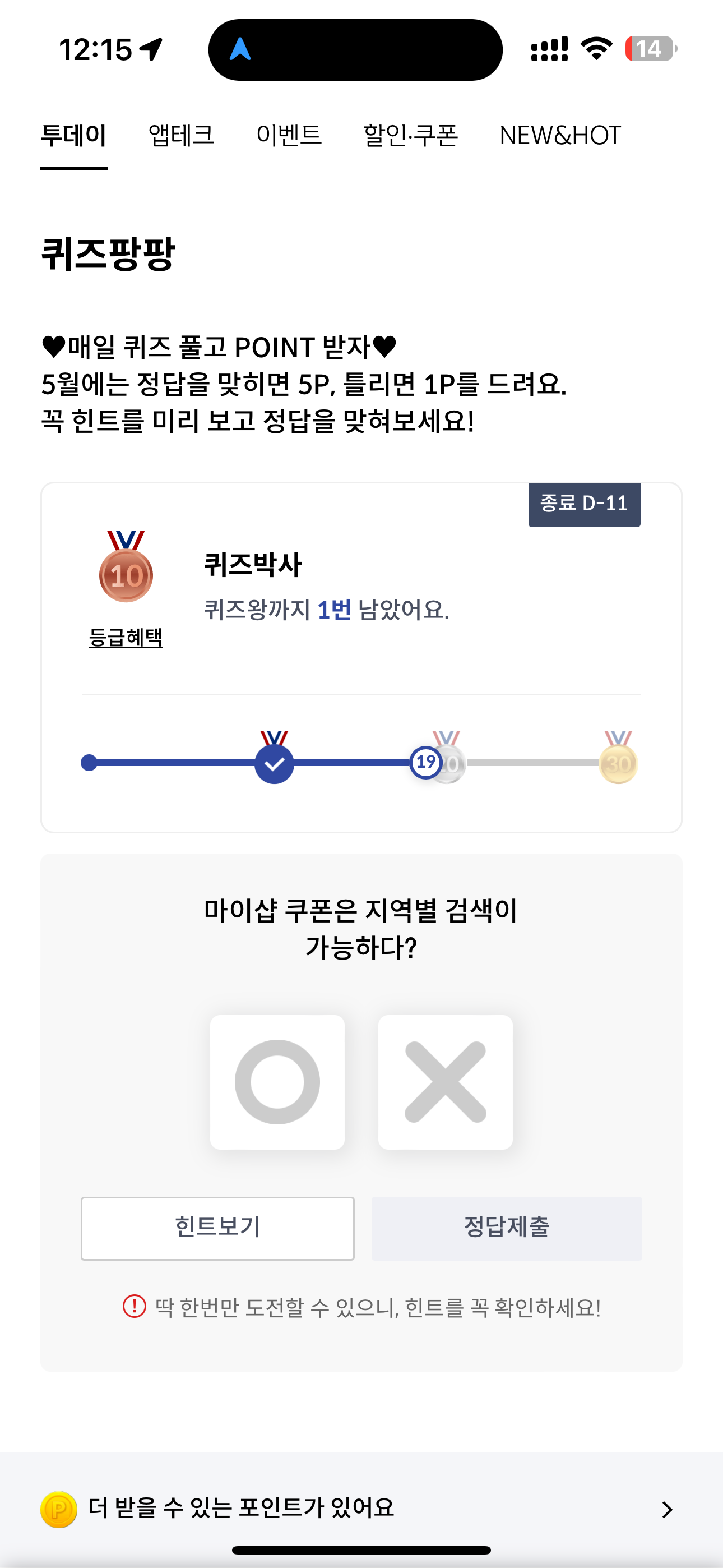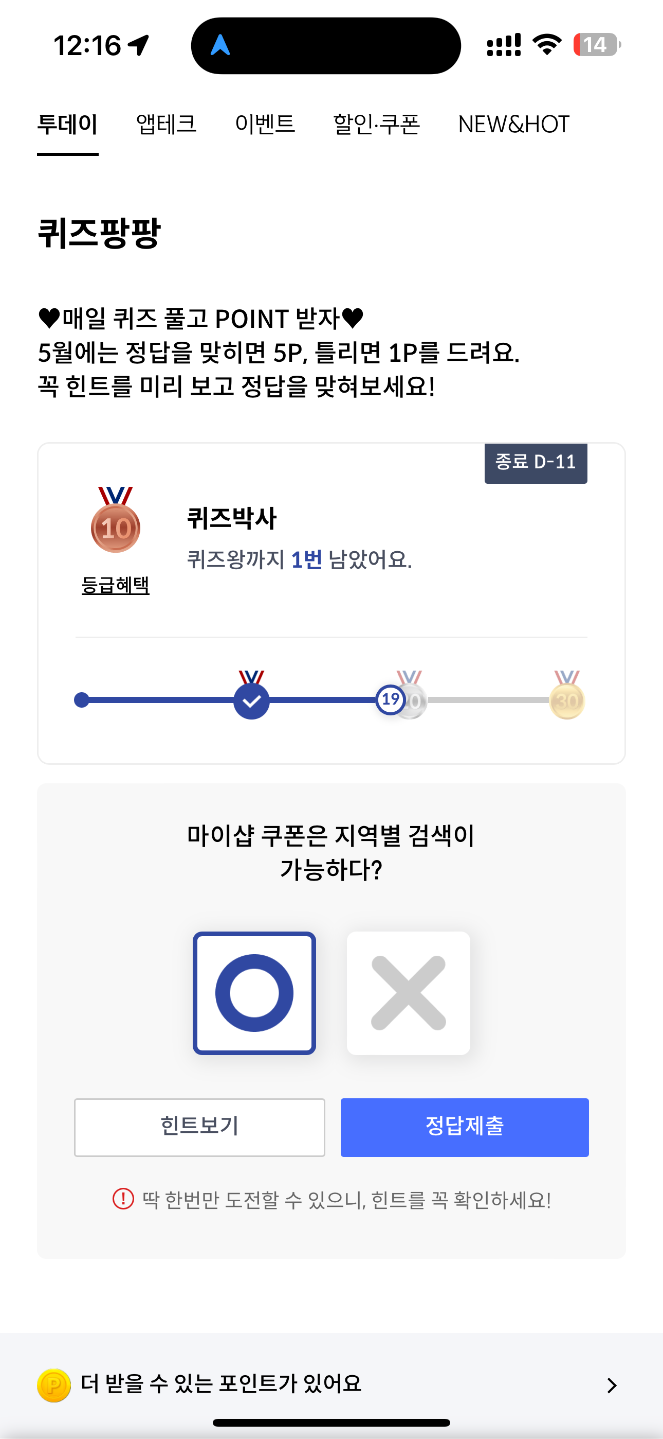 신한카드 퀴즈팡팡 정답은 O 입니다