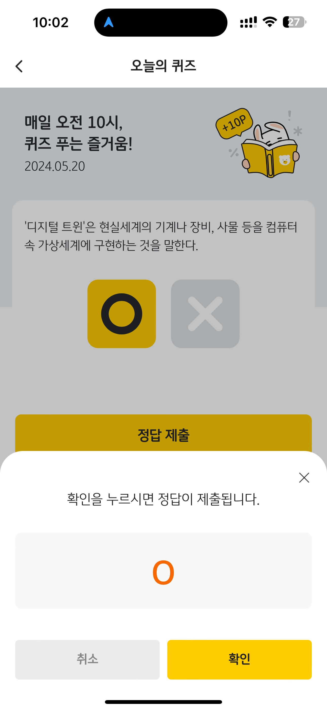 KB Pay 오늘의 퀴즈 정답은 O 입니다