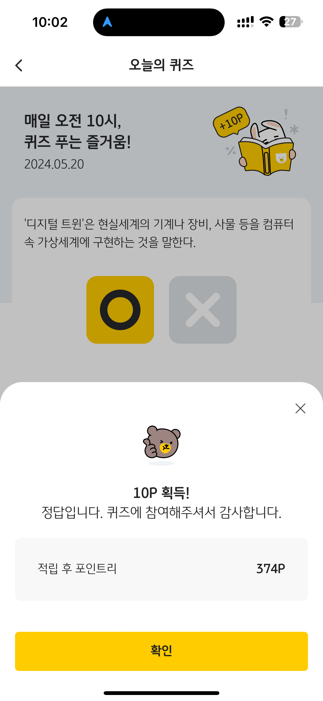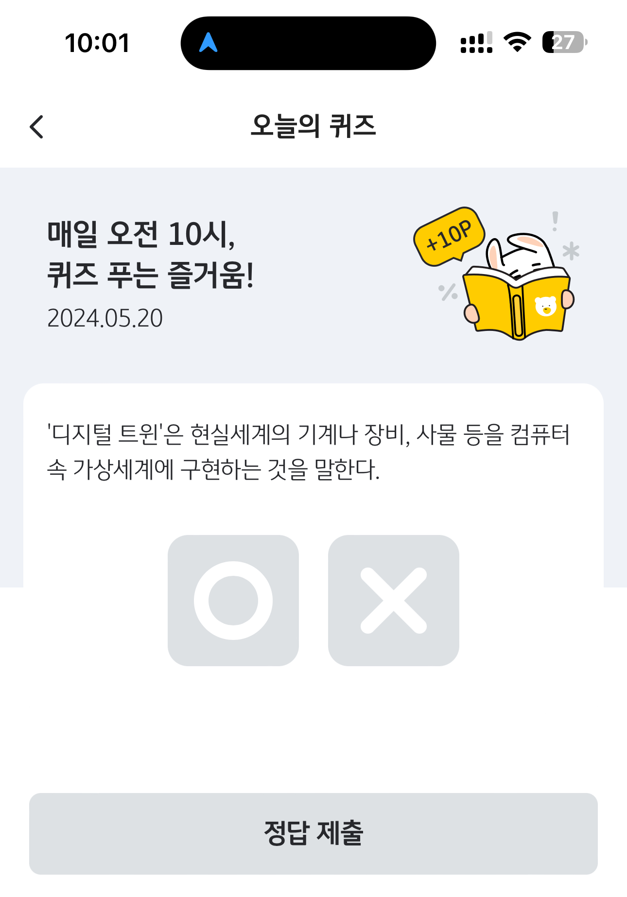 KB Pay 오늘의 퀴즈 5월 20일 정답('디지털 트윈'은 현실세계의 기계나 장비, 사물 등을 컴퓨터 속 가상세계에 구현하는 것을 말한다)