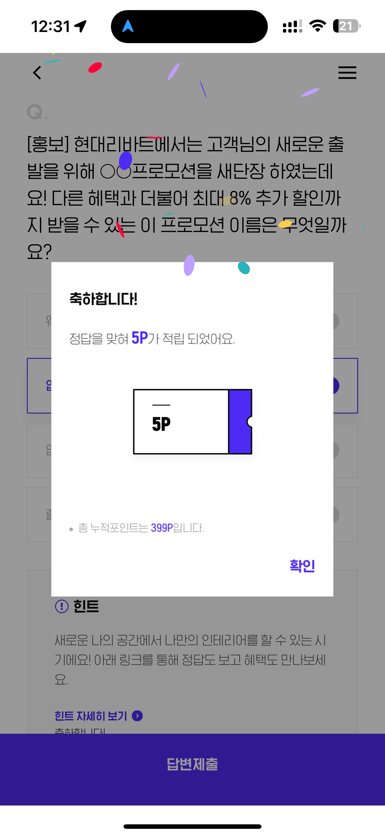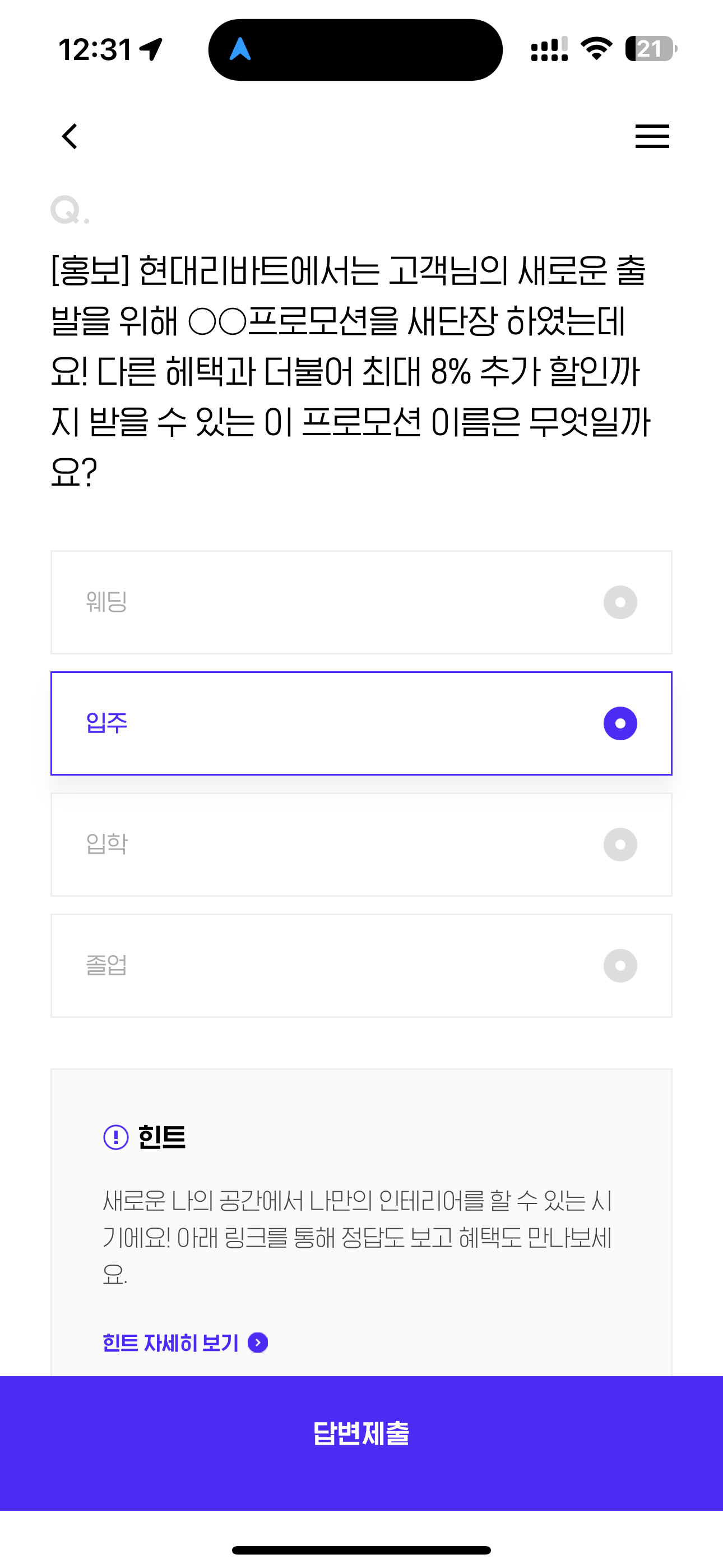 H포인트 퀴즈 정답은 입주 입니다