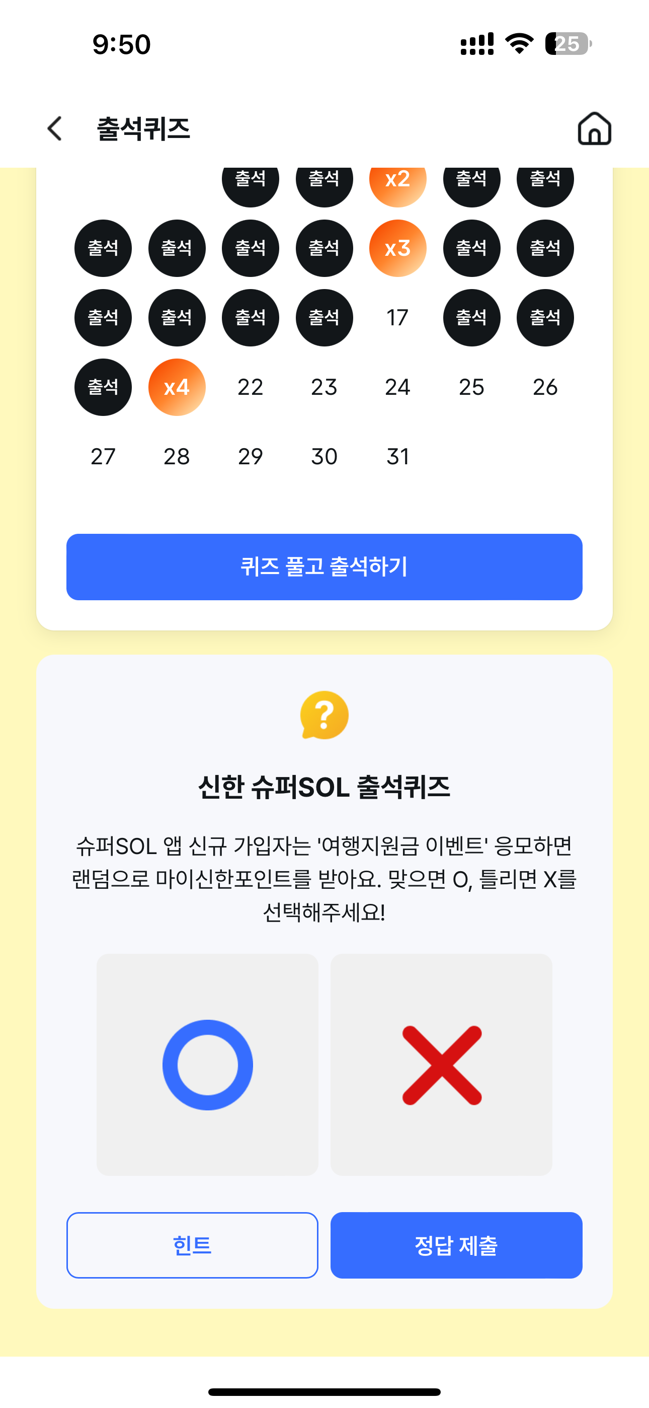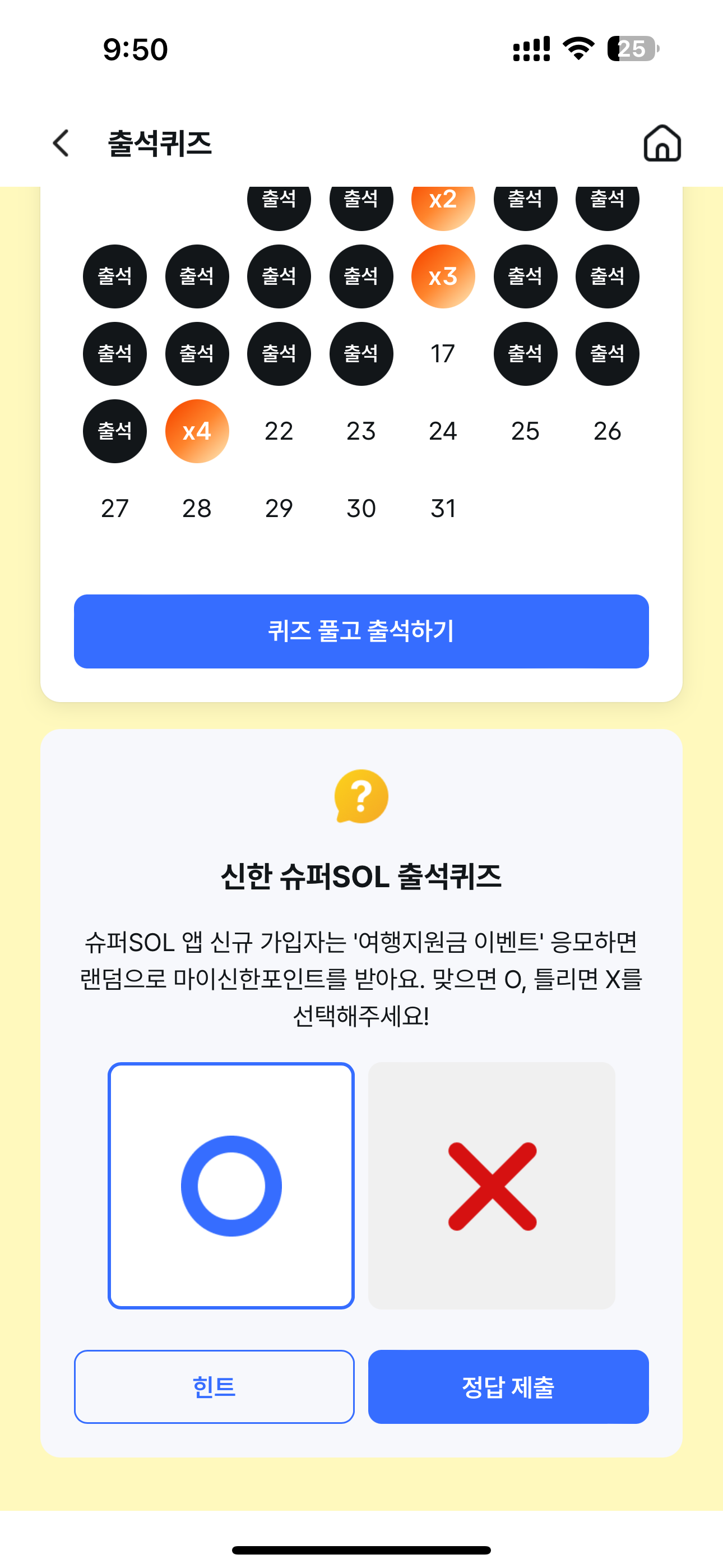 신한 슈퍼SOL 출석퀴즈 정답은 O 입니다
