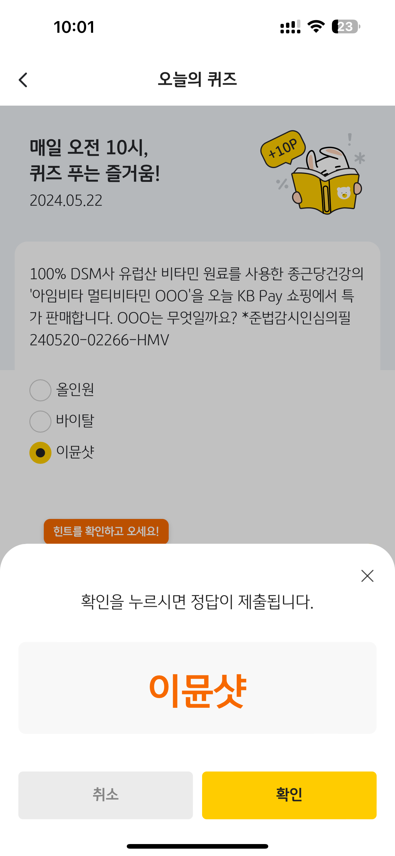 KB Pay 오늘의 퀴즈 정답은 이뮨샷 입니다