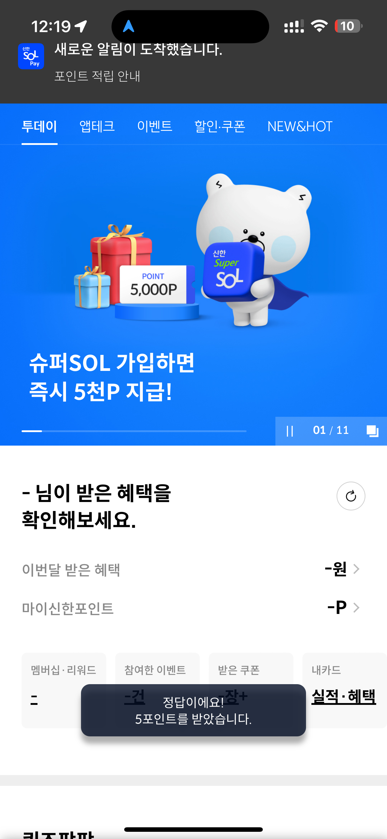 5포인트를 받았습니다. 포인트는 현금 전환 가능하니 꼭 받으시고요. 여러분의 재테크를 응원합니다