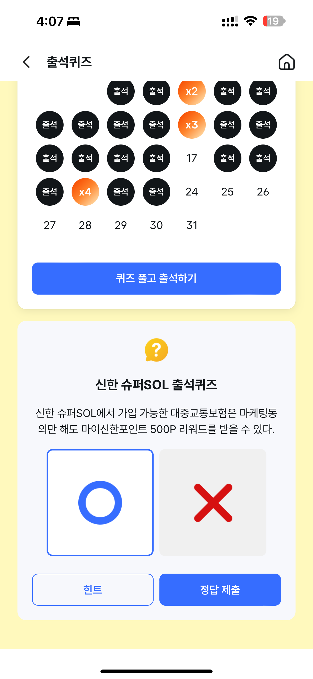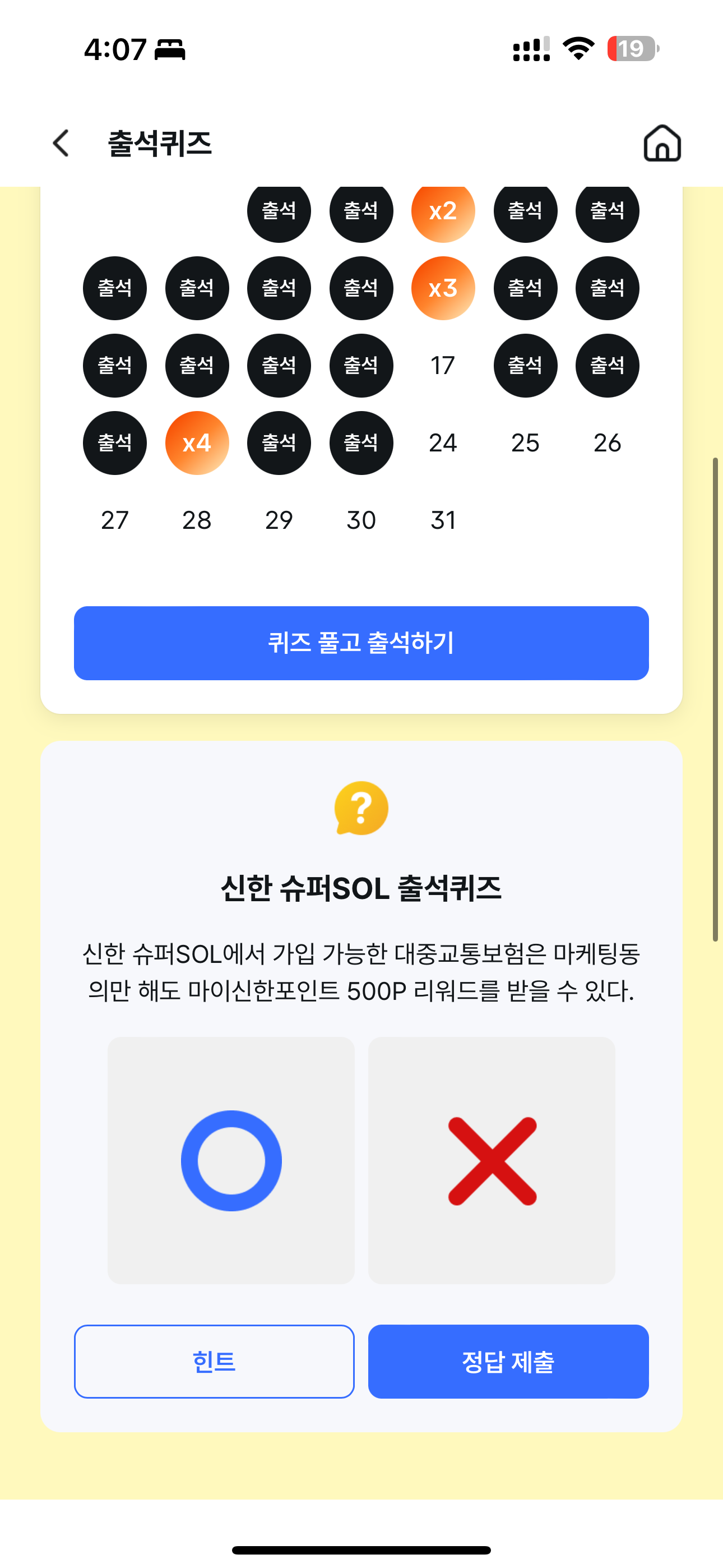 신한 슈퍼SOL 출석퀴즈 정답은 O 입니다