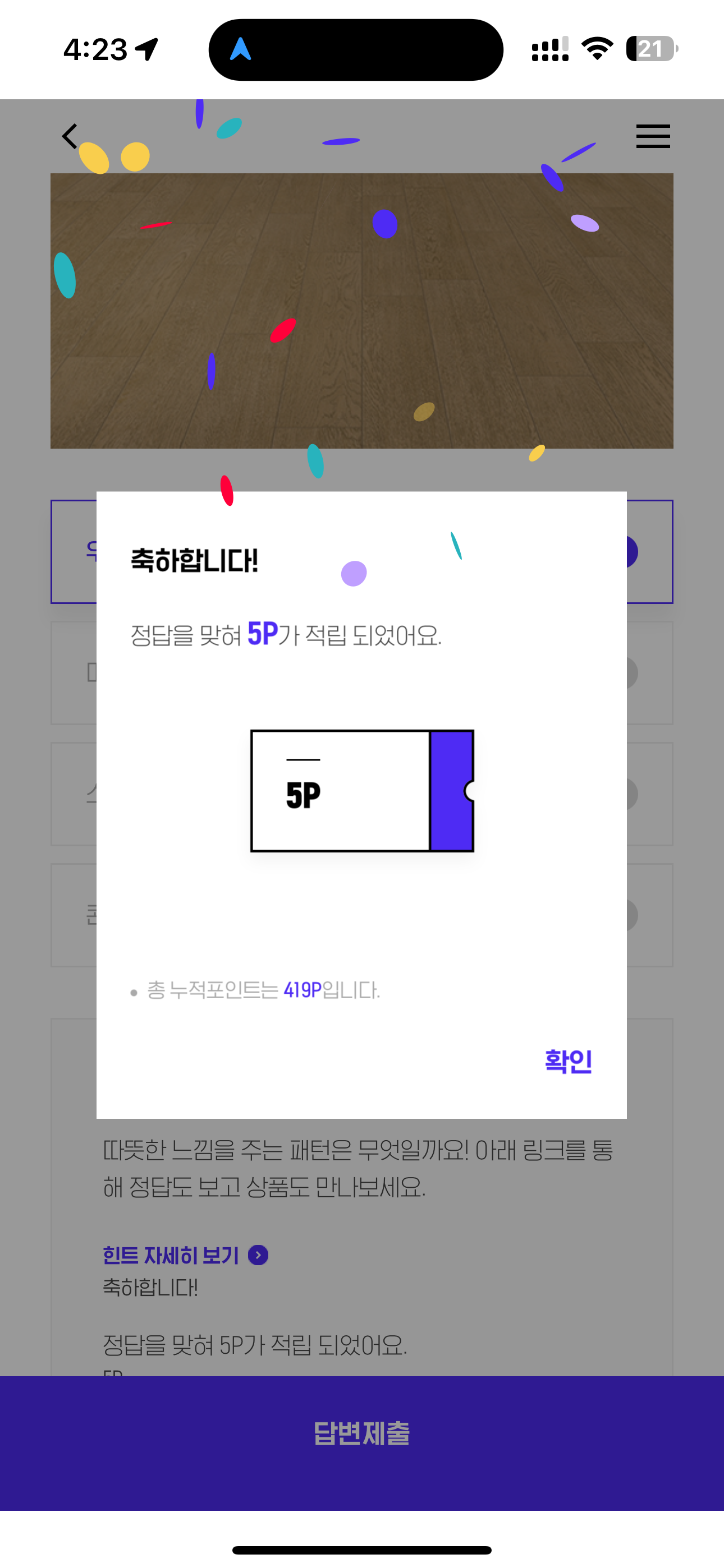 5P를 받았습니다. 포인트는 쇼핑몰에서 현금처럼 사용 가능하니 꼭 받으시고요. 여러분의 재테크를 응원합니다