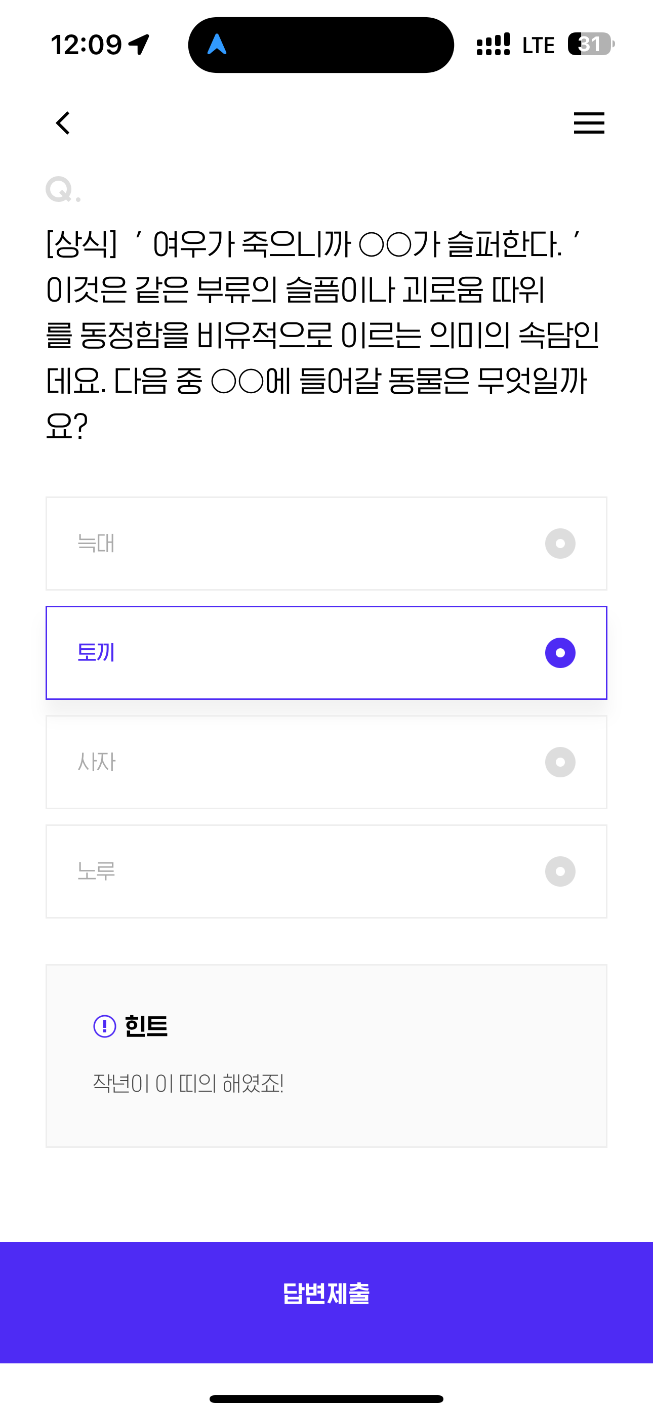 [상식] ' 여우가 죽으니까 OO가 슬퍼한다. ' 이것은 같은 부류의 슬픔이나 괴로움 따위를 동정함을 비유적으로 이르는 의미의 속담인데요. 다음 중 OO에 들어갈 동물은 무엇일까요? 보기는 1. 늑대 2. 토끼 3. 사자 4. 노루 입니다. 2023년은 이 동물의 해였죠. 상식으로 알아두면 좋습니다.