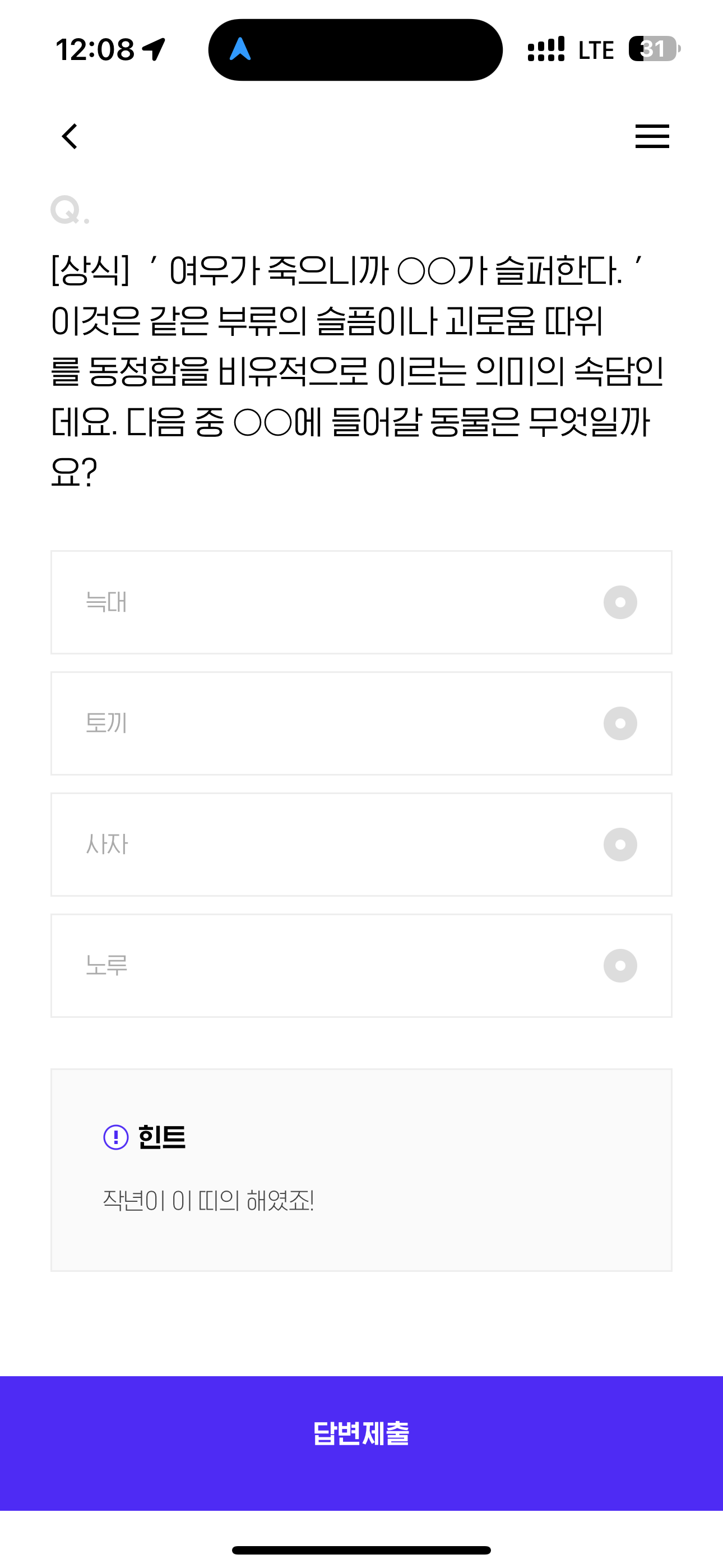 [상식] ' 여우가 죽으니까 OO가 슬퍼한다. ' 이것은 같은 부류의 슬픔이나 괴로움 따위를 동정함을 비유적으로 이르는 의미의 속담인데요. 다음 중 OO에 들어갈 동물은 무엇일까요? 보기는 1. 늑대 2. 토끼 3. 사자 4. 노루 입니다. 2023년은 이 동물의 해였죠. 상식으로 알아두면 좋습니다.