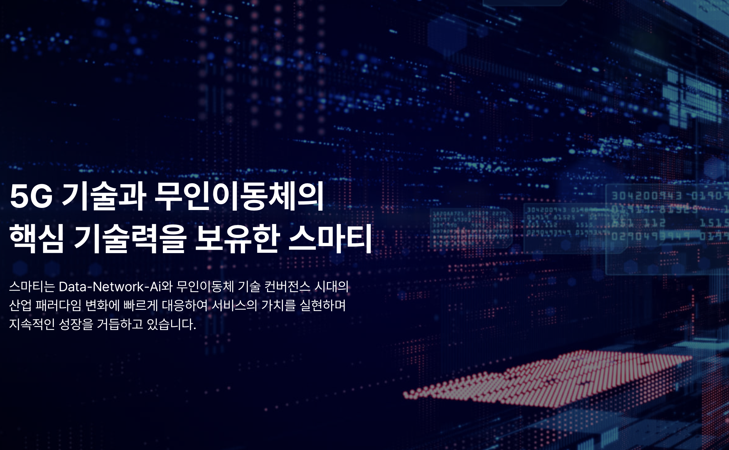 스마티도 기대되는 곳입니다. 5G 기술과 무인이동체의 핵심 기술력을 보유한 곳인데요. 무인이동체에서 5G 기술이 어떻게 활용되는지 관심있게 지켜 보면 좋을 것 같습니다.