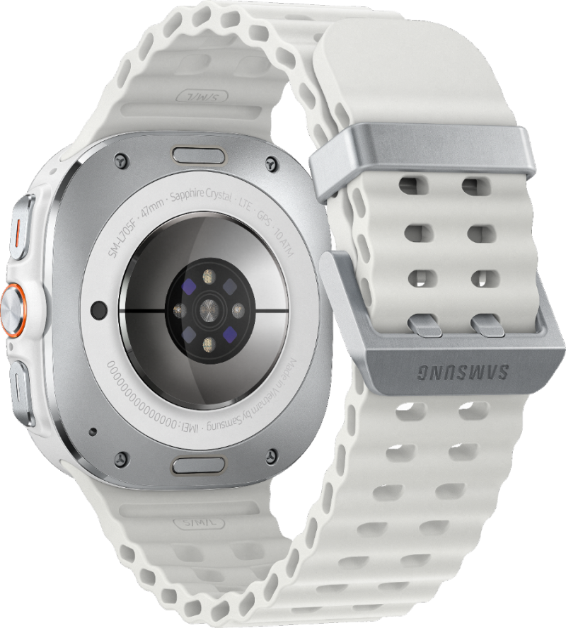 그리고 후면을 보면 다양한 특징을 알 수 있는데요. 47mm 사이즈, 사파이어 크리스탈 글래스, LTE 지원, GPS, 10ATM 100미터 방수까지 갖추고 있는걸 알 수 있습니다.