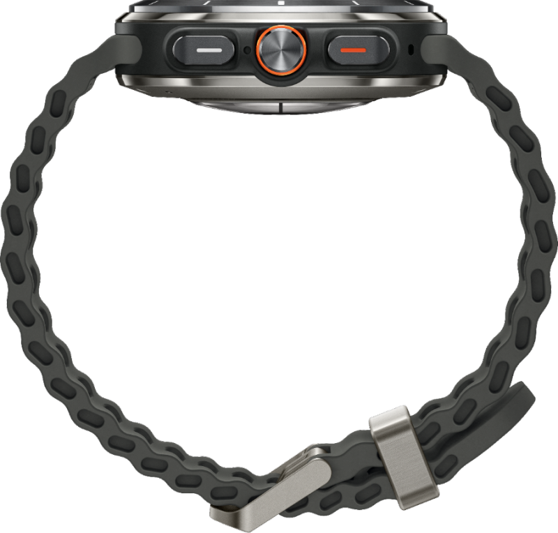 그리고 우측에는 2개의 큰 버튼과 1개의 디지털 크라운 버튼을 가지고 있습니다. 애플워치 울트라와 비슷하게 오렌지 컬러로 포인트를 줬습니다. 그리고 밴드 디자인도 애플워치 울트라에서 봤던 느낌을 그대로 가져왔습니다.