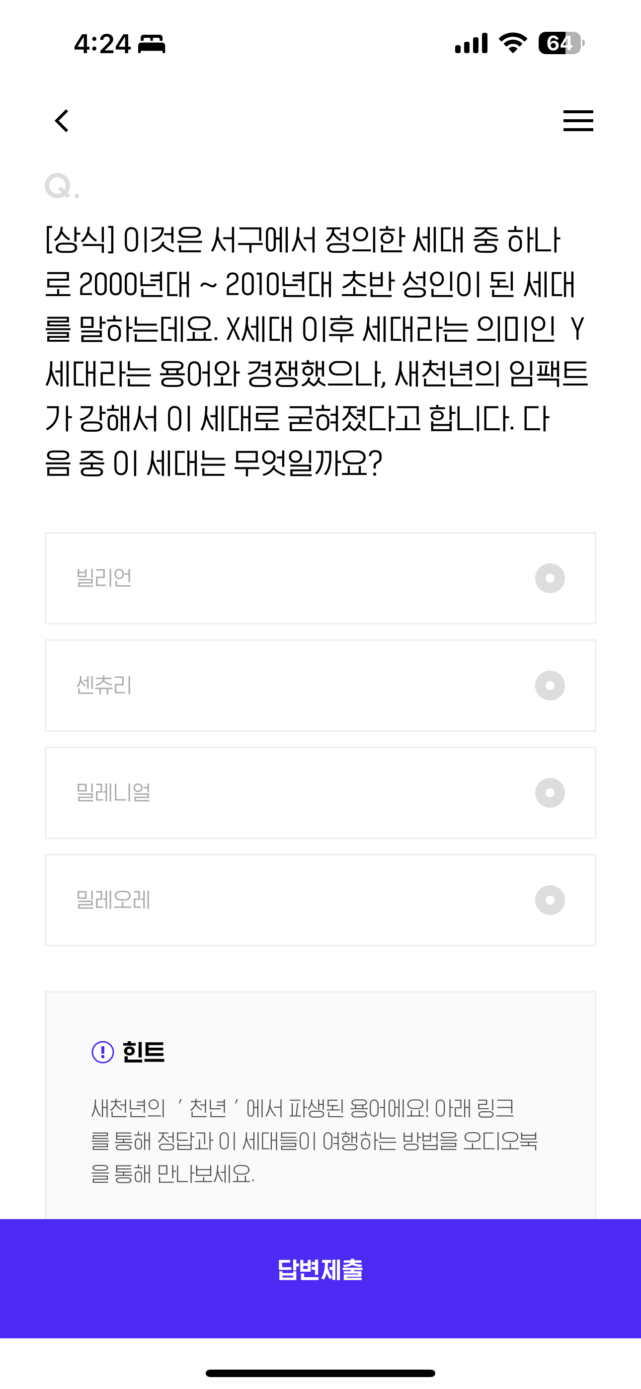 H포인트 퀴즈 정답은 밀레니얼 입니다