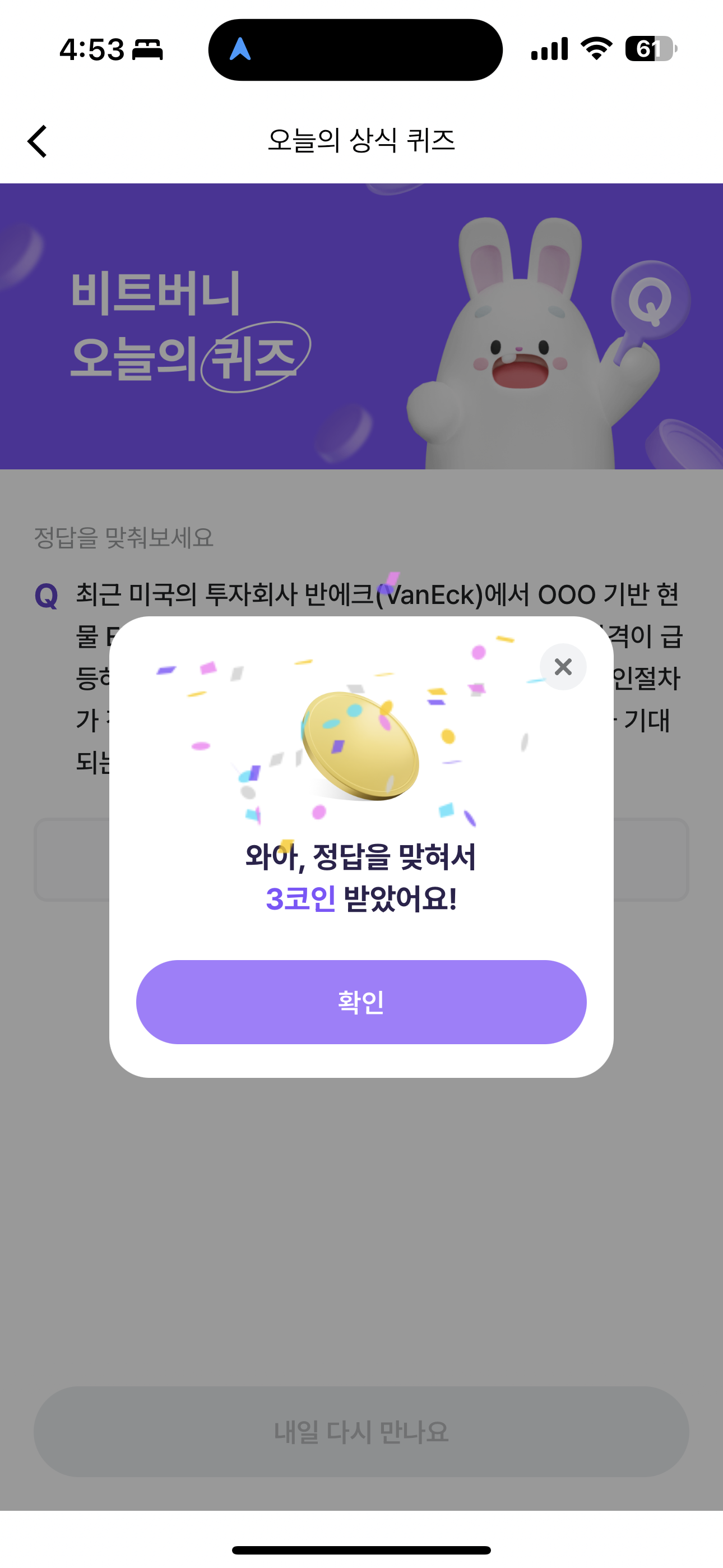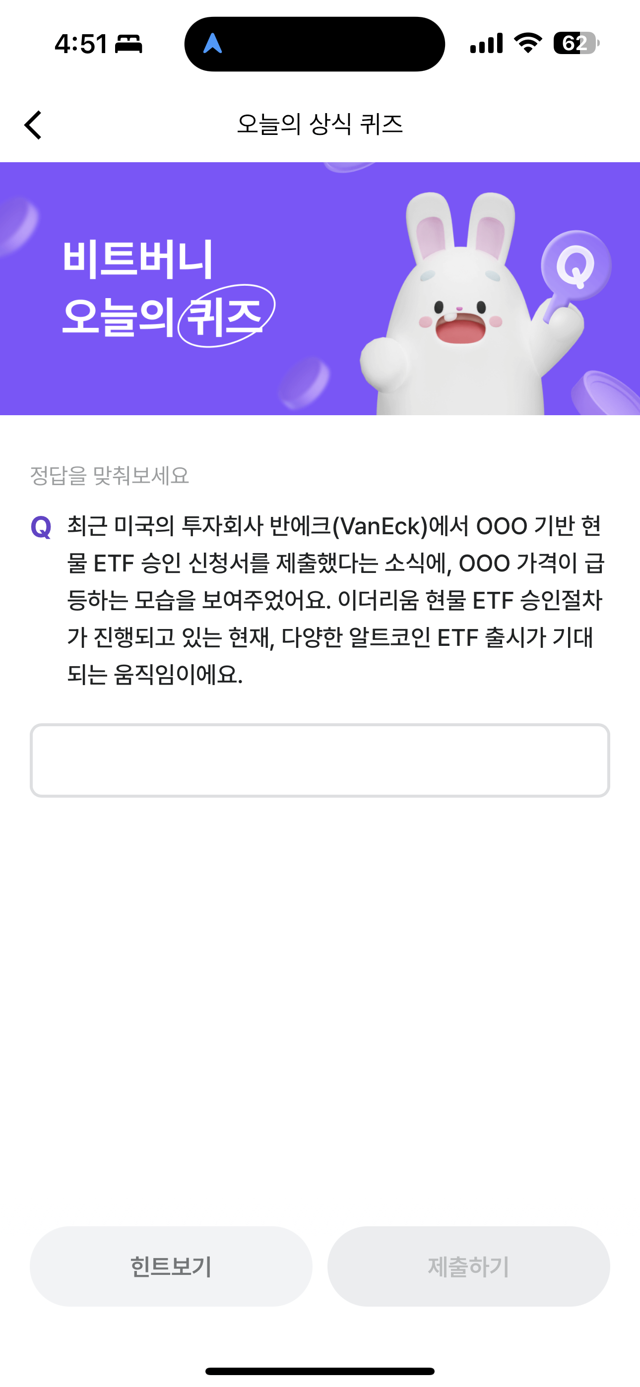 비트버니 오늘의 퀴즈 정답은 ㅅㄹㄴ 입니다