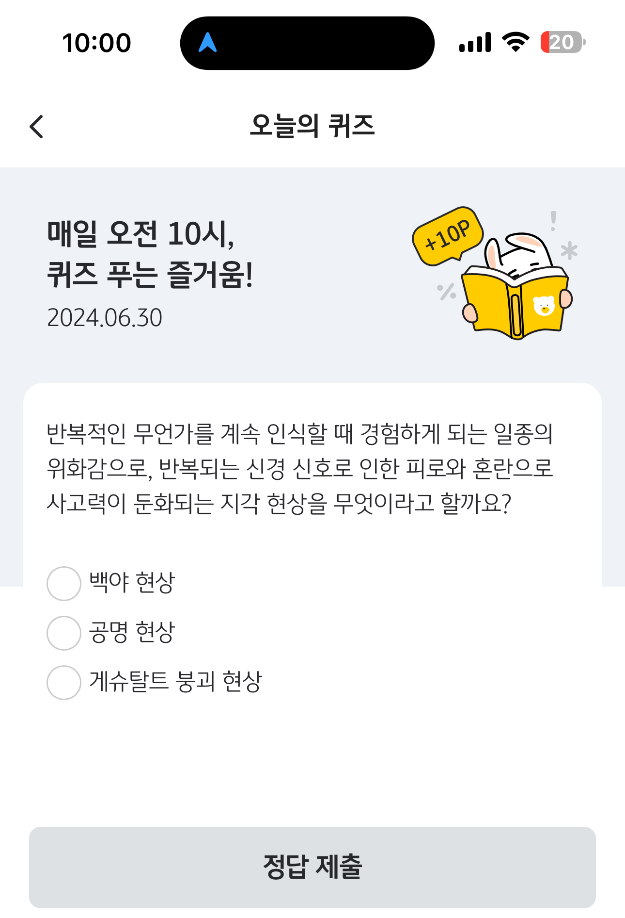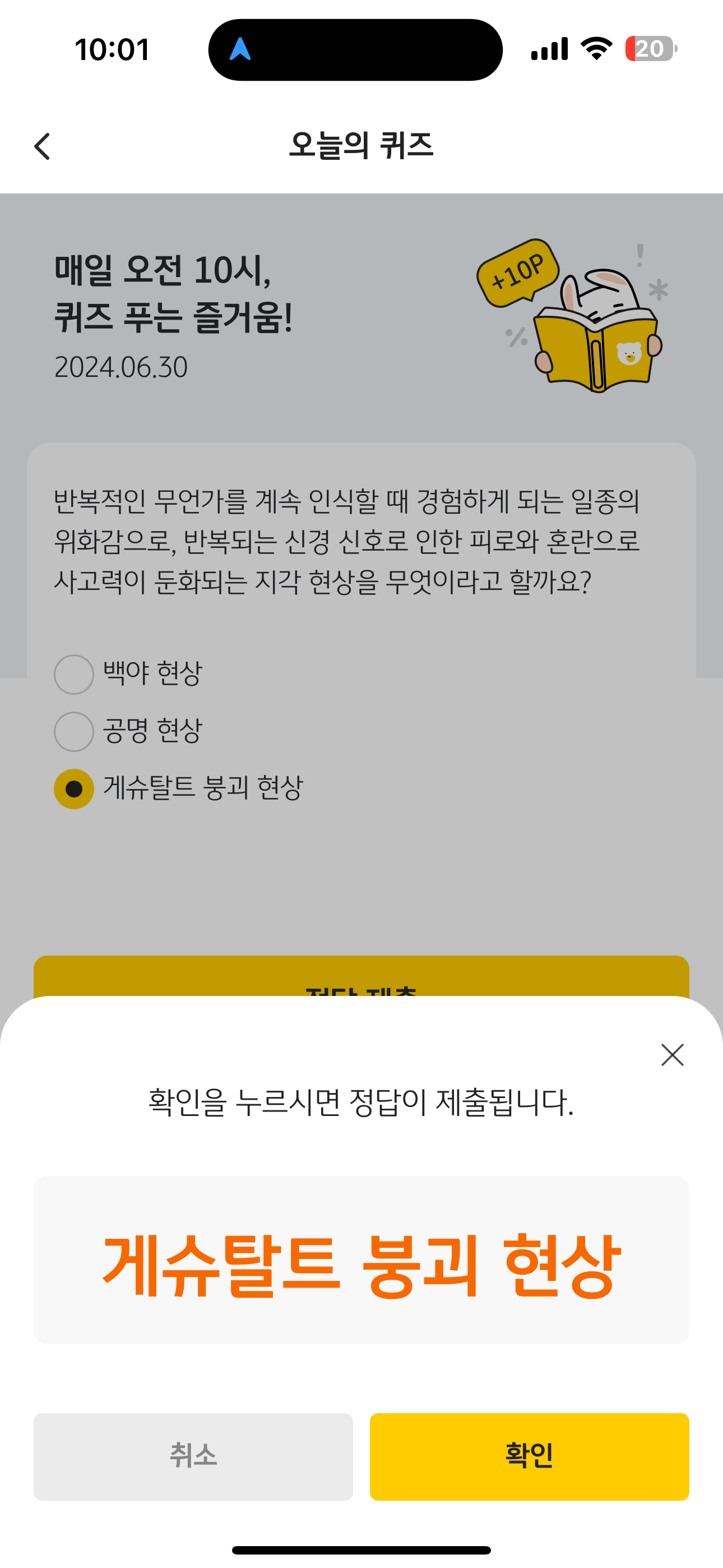 KB Pay 오늘의 퀴즈 정답은 게슈탈트 붕괴 현상 입니다
