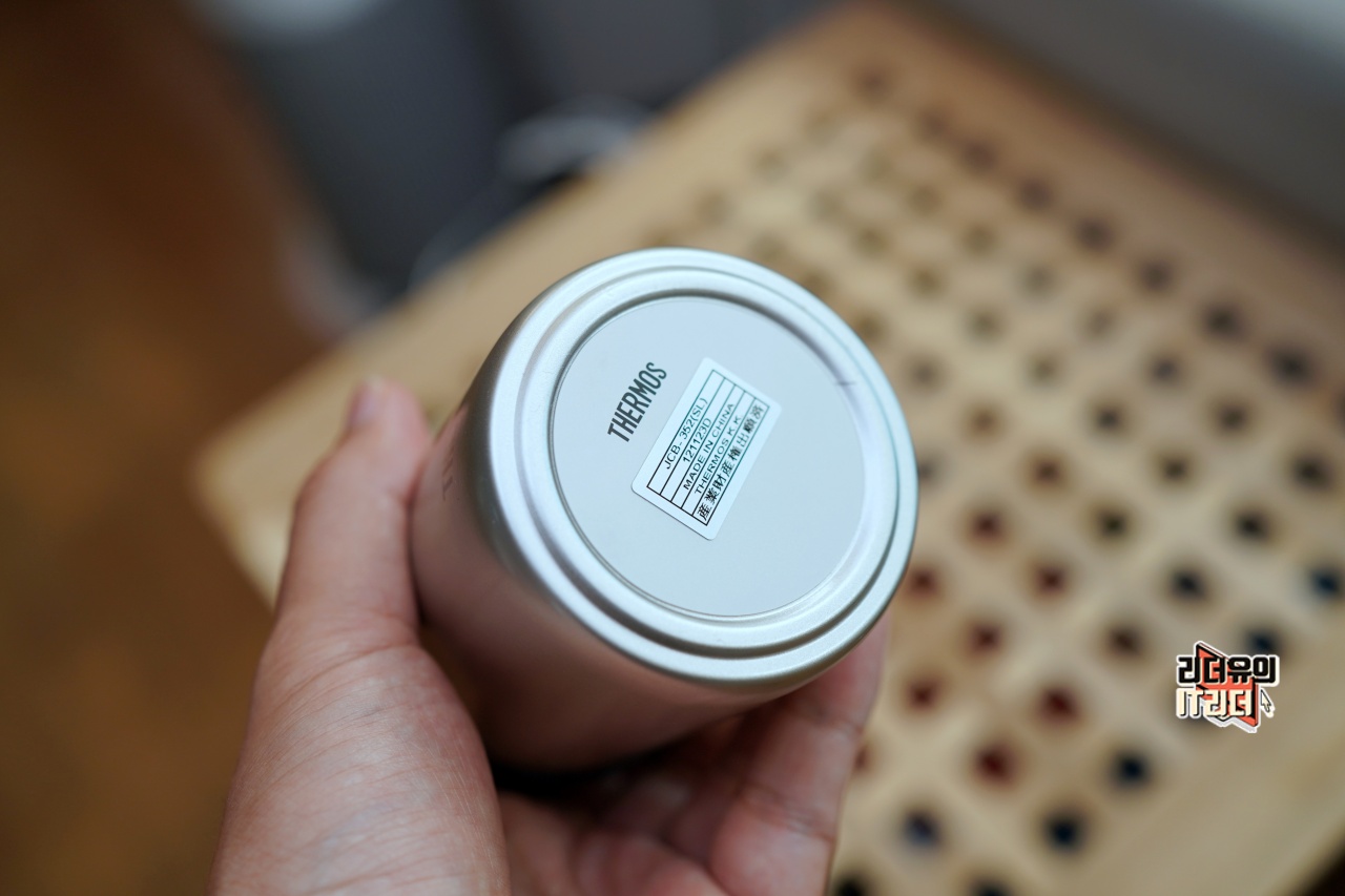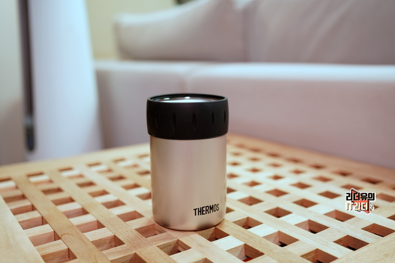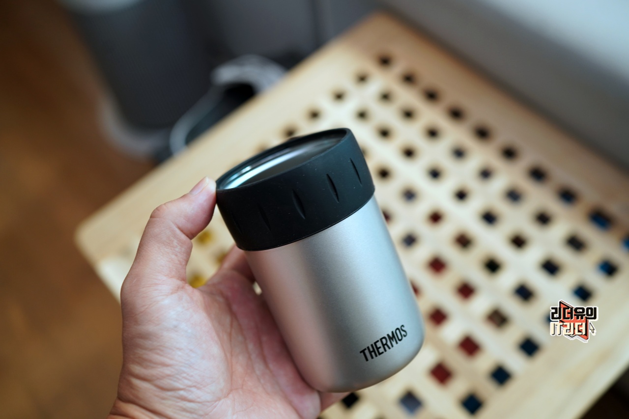써모스 캔쿨러 JCB-352는 캠핑컵 같은 디자인을 가지고 있습니다. 메탈 소재이고 위에 그립 부분은 고무로 되어 있습니다. 하단부에는 써모스(THERMOS) 브랜드명이 새겨져 있습니다.