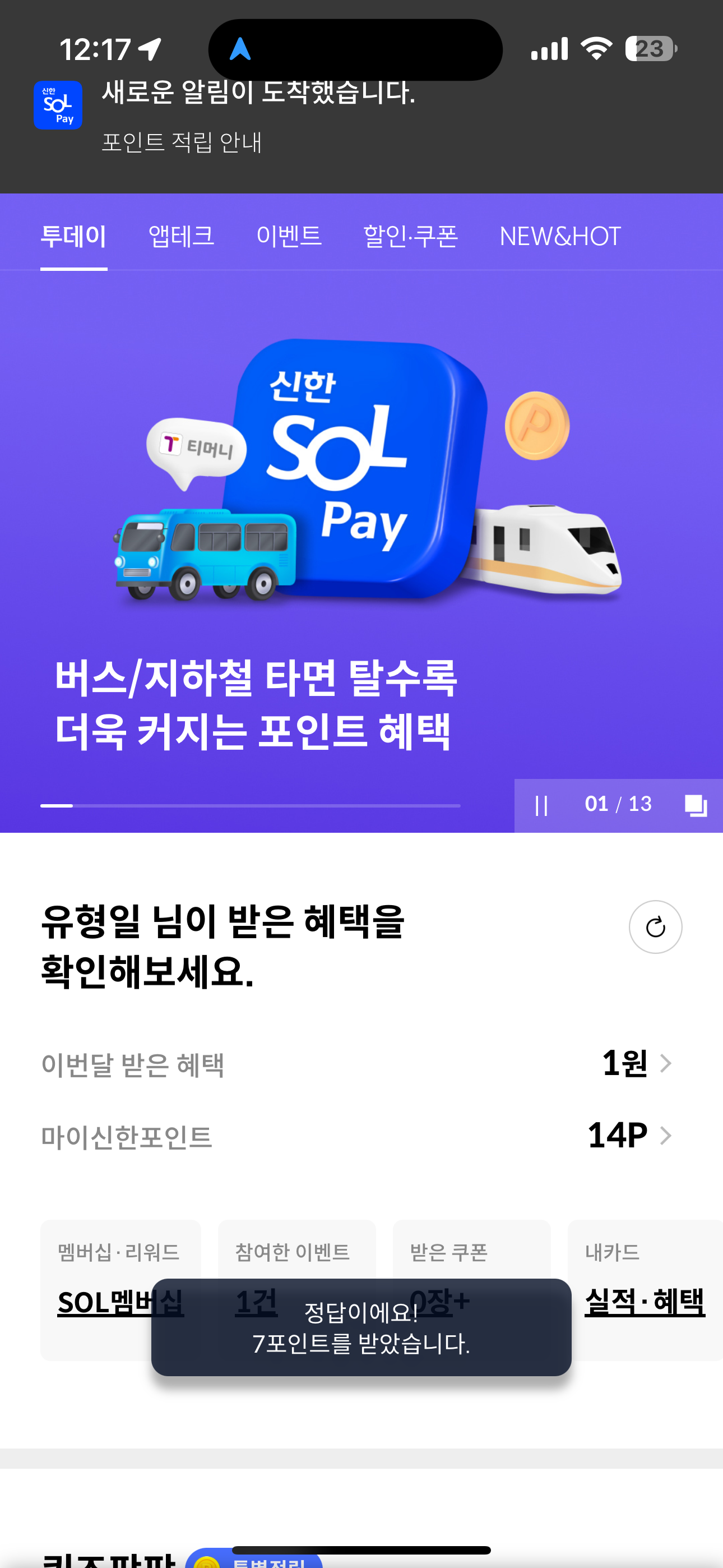 7포인트를 받았습니다. 포인트는 현금 전환 가능하니 꼭 받으시고요. 여러분의 재테크를 응원합니다