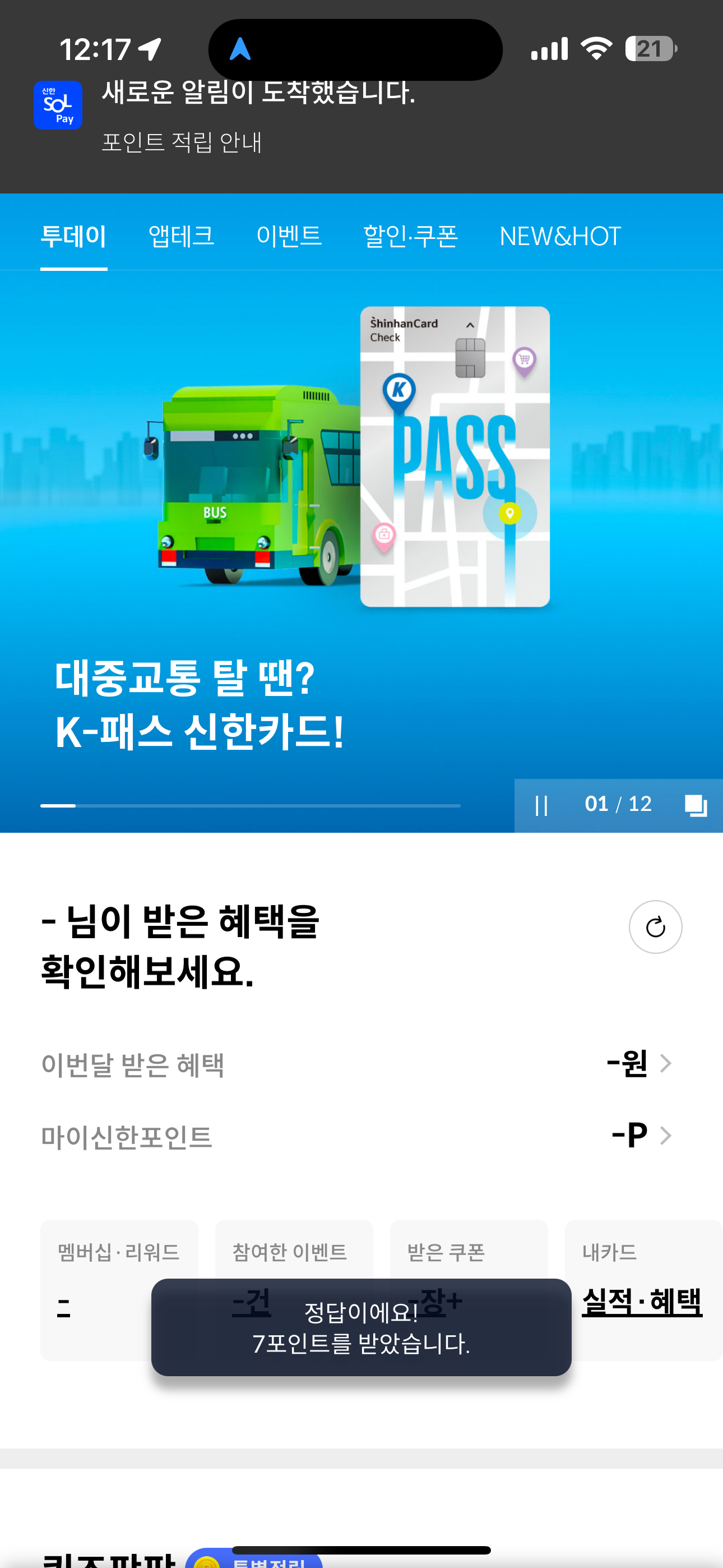 7포인트를 받았습니다. 포인트는 현금으로 전환 가능하니 꼭 받으시고요. 여러분의 재테크를 응원합니다
