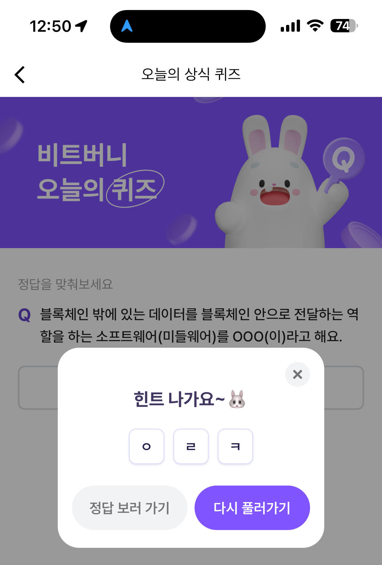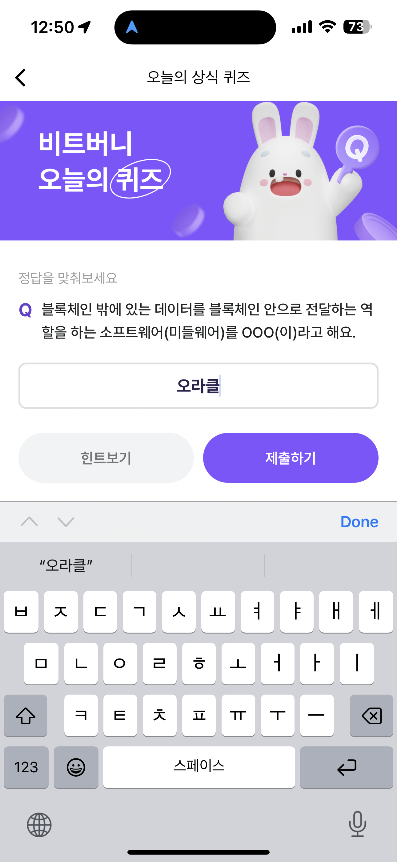 비트버니 오늘의 퀴즈 초성 힌트는 ㅇㄹㅋ 입니다