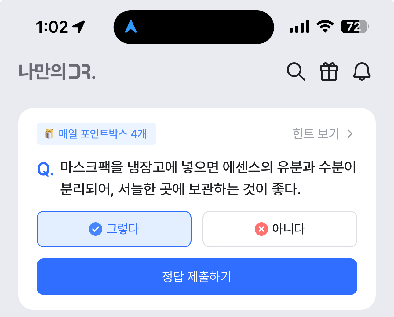 나만의닥터 퀴즈 정답은 그렇다 입니다