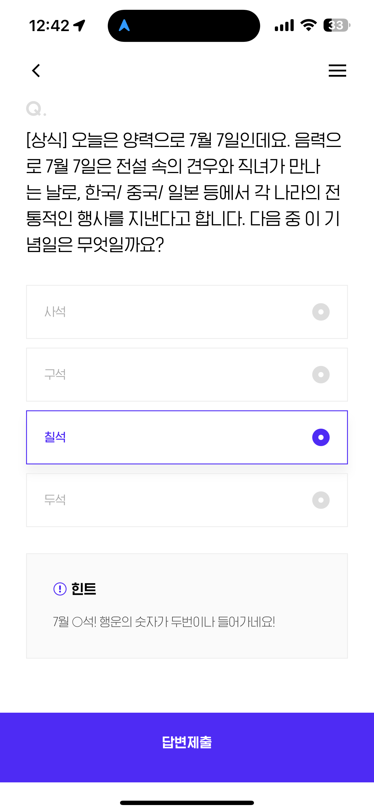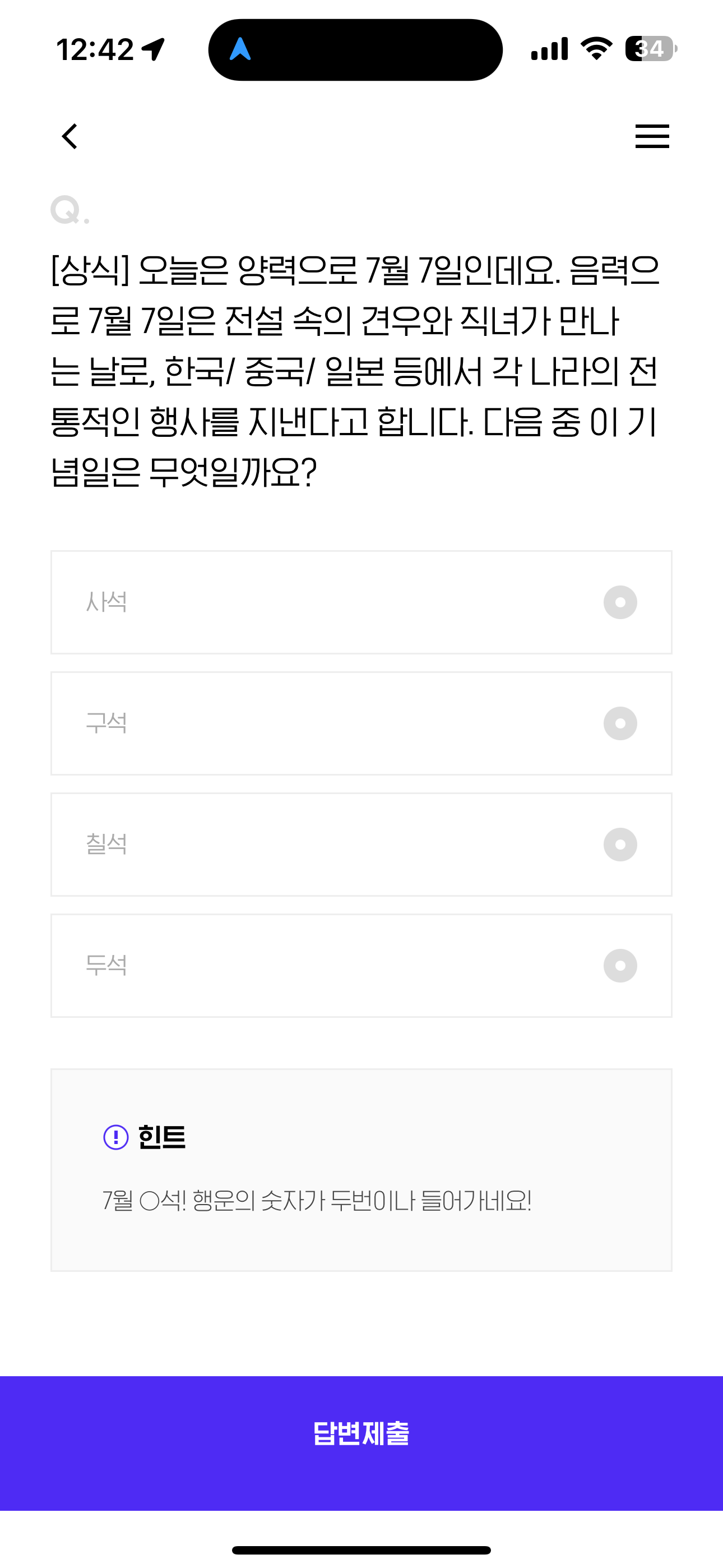 H포인트 퀴즈 정답은 칠석 입니다