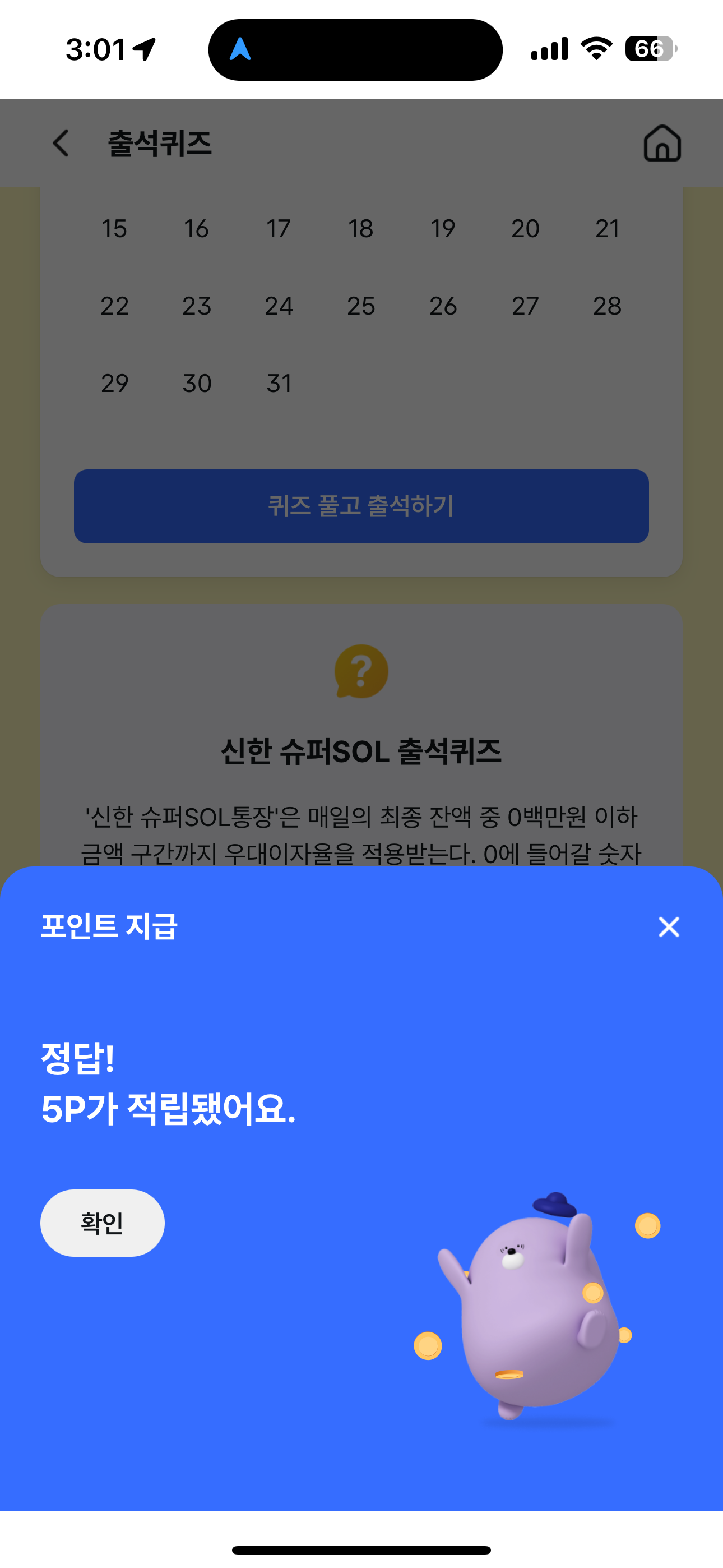 신한 슈퍼SOL 출석퀴즈 정답은 3 입니다