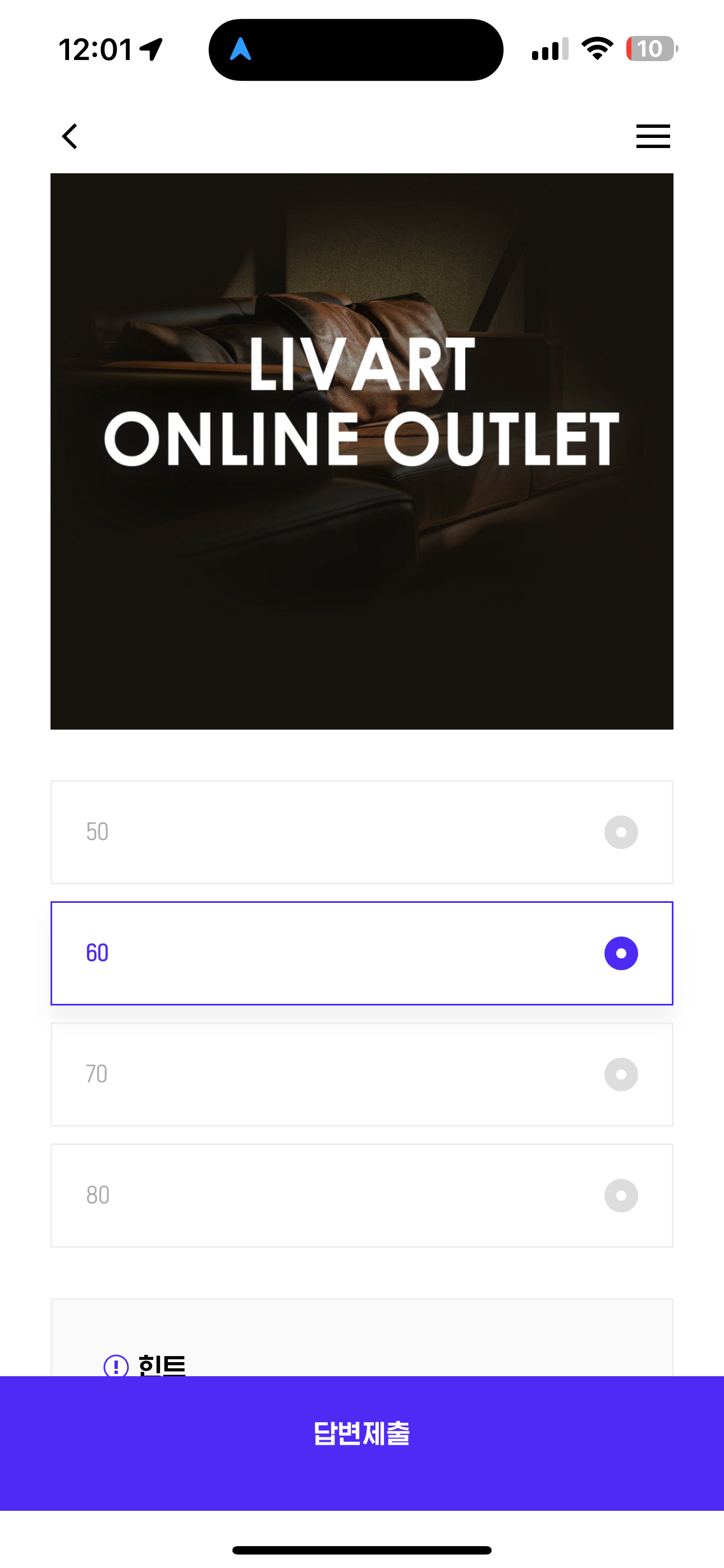 H포인트 퀴즈 정답은 60 입니다