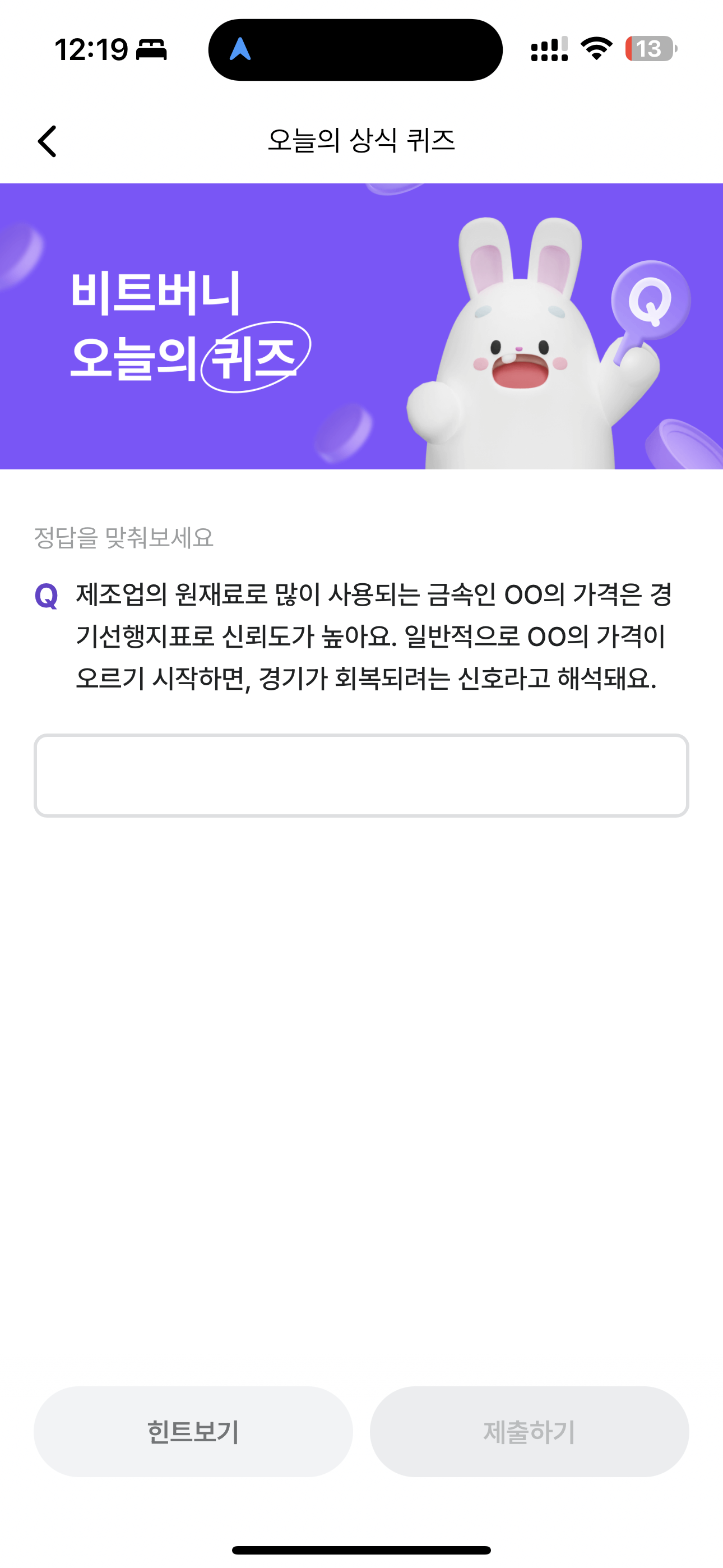 비트버니 오늘의 퀴즈 초성 힌트는 ㄱㄹ 입니다
