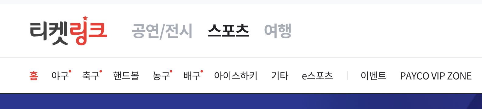 티켓예매, 스포츠, 공연, 전시 등 티켓 예매서비스 제공. 페이코(PAYCO)간편결제 지원.