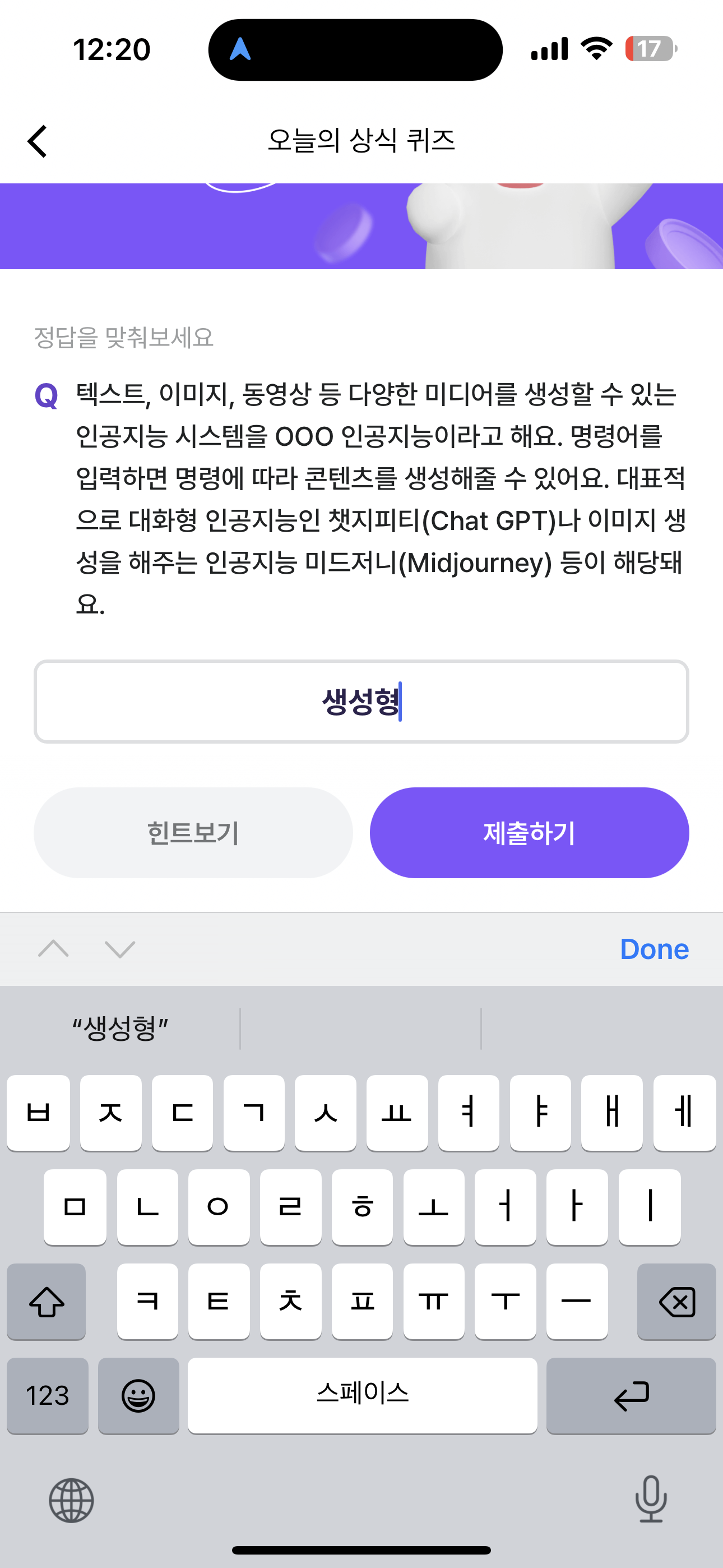 비트버니 오늘의 퀴즈 정답은 생성형 입니다