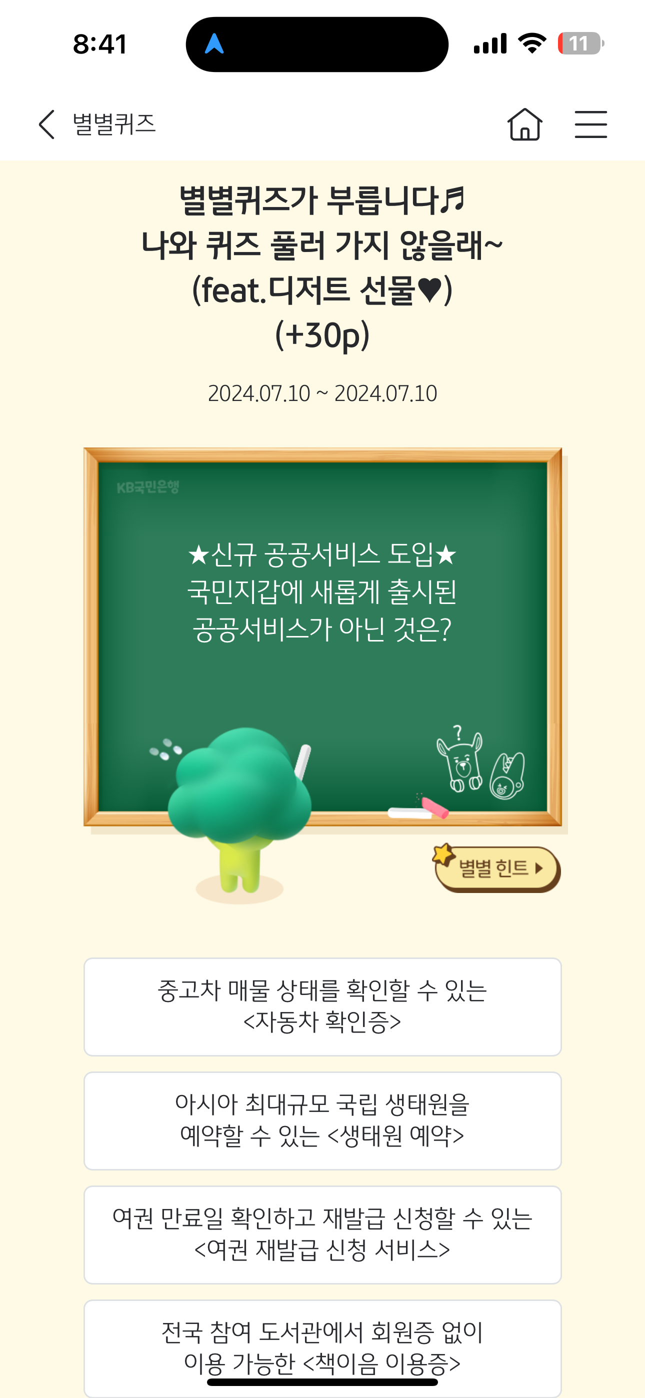 KB스타뱅킹 별별퀴즈 7월 10일 문제입니다