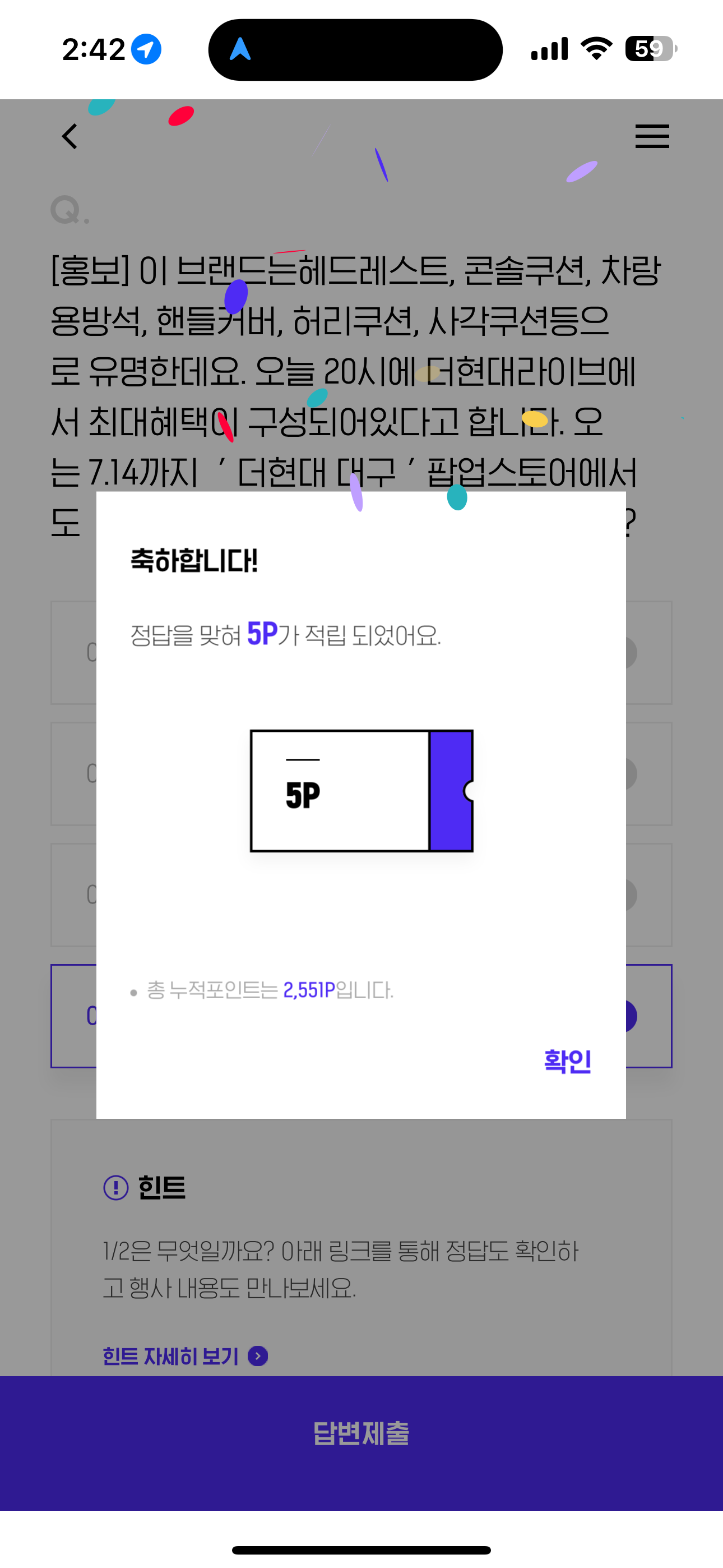 H포인트 퀴즈 정답은 아임반 입니다