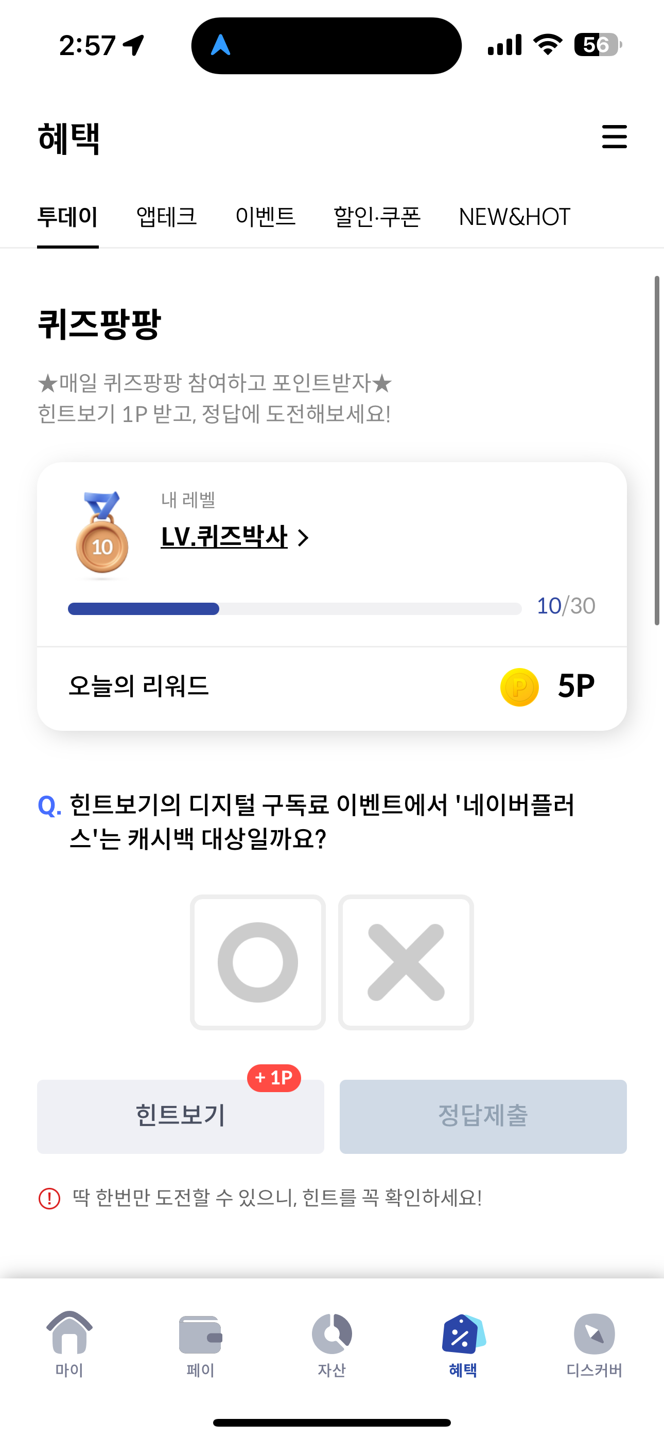 신한카드 퀴즈팡팡 정답은 O 입니다