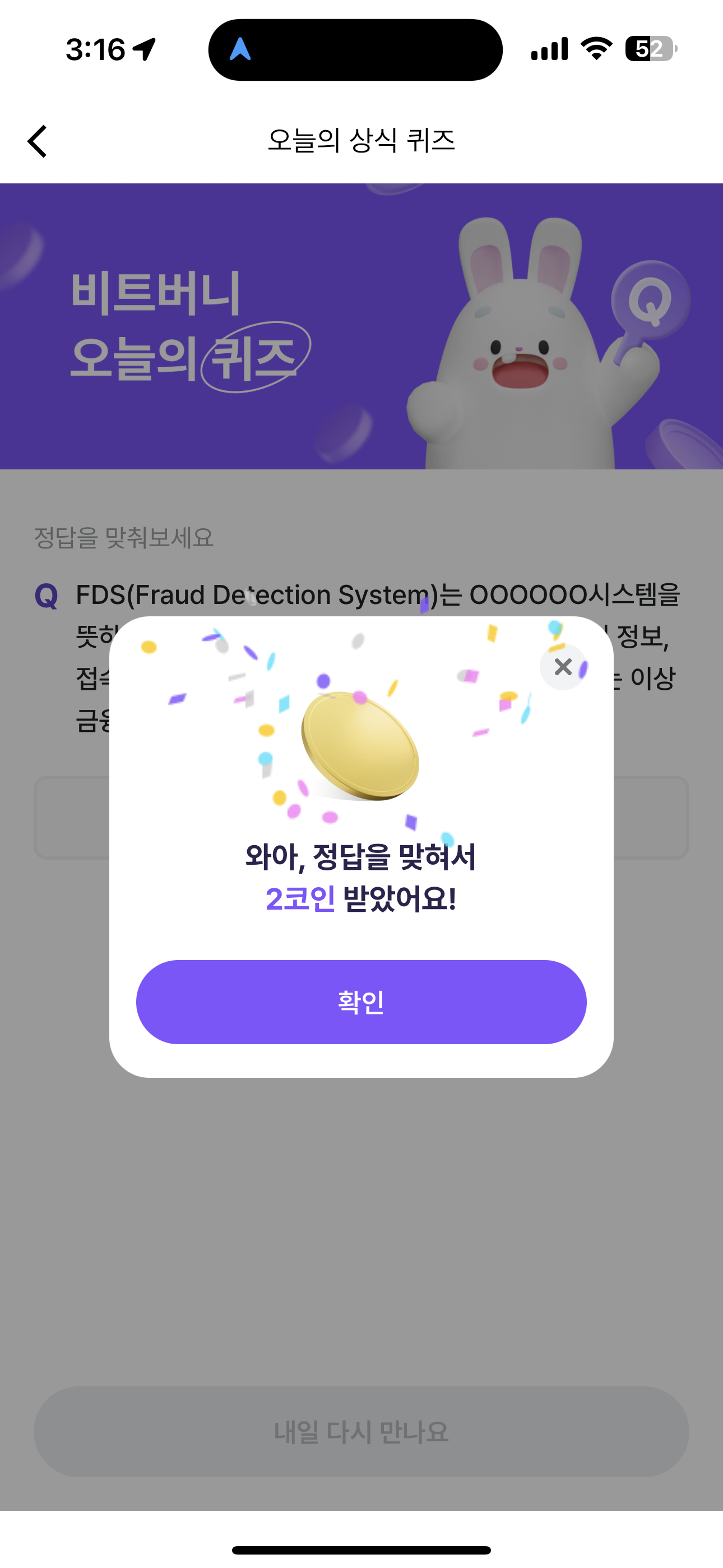 비트버니 오늘의 퀴즈 정답은 이상거래탐지 입니다
