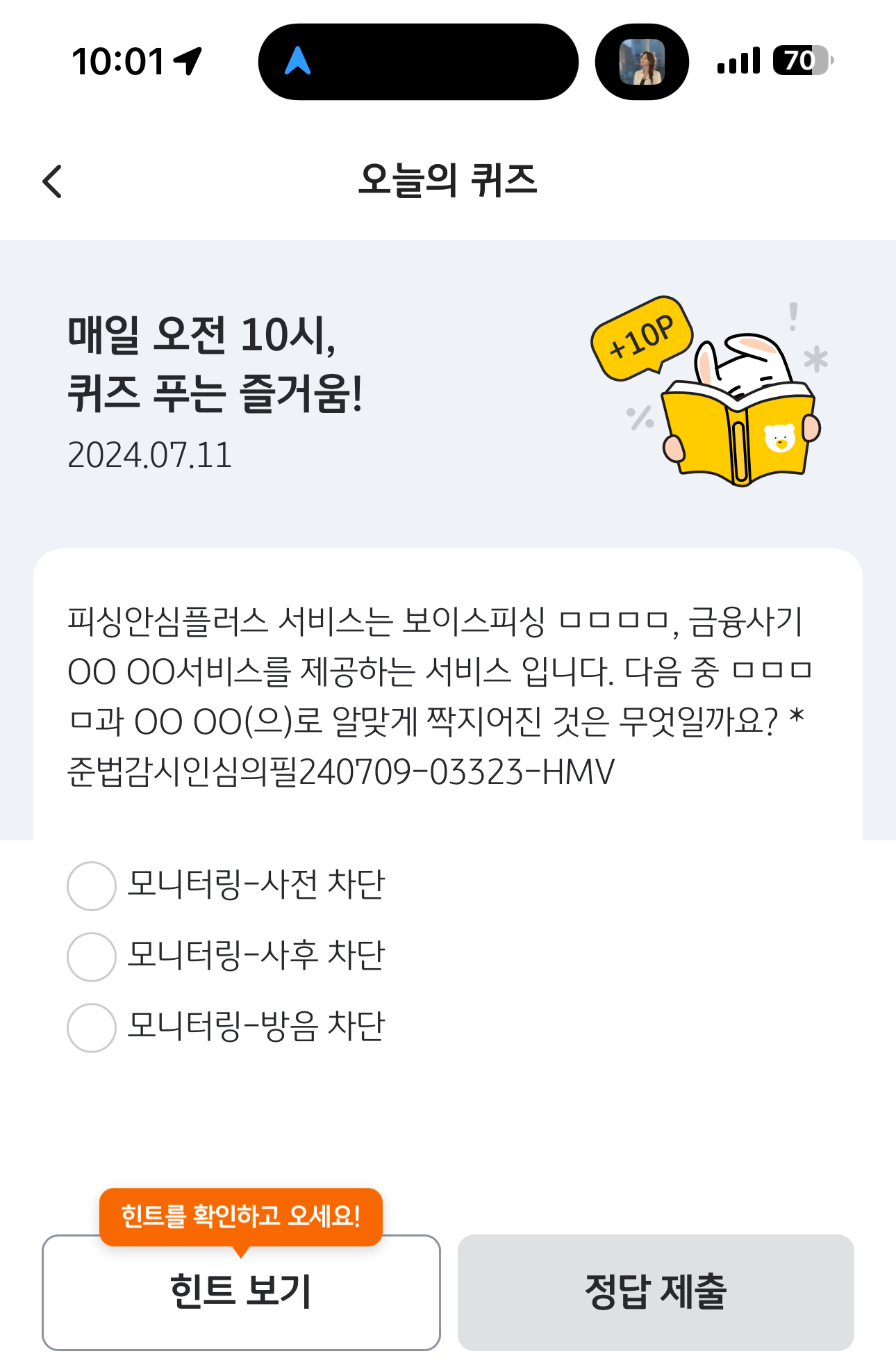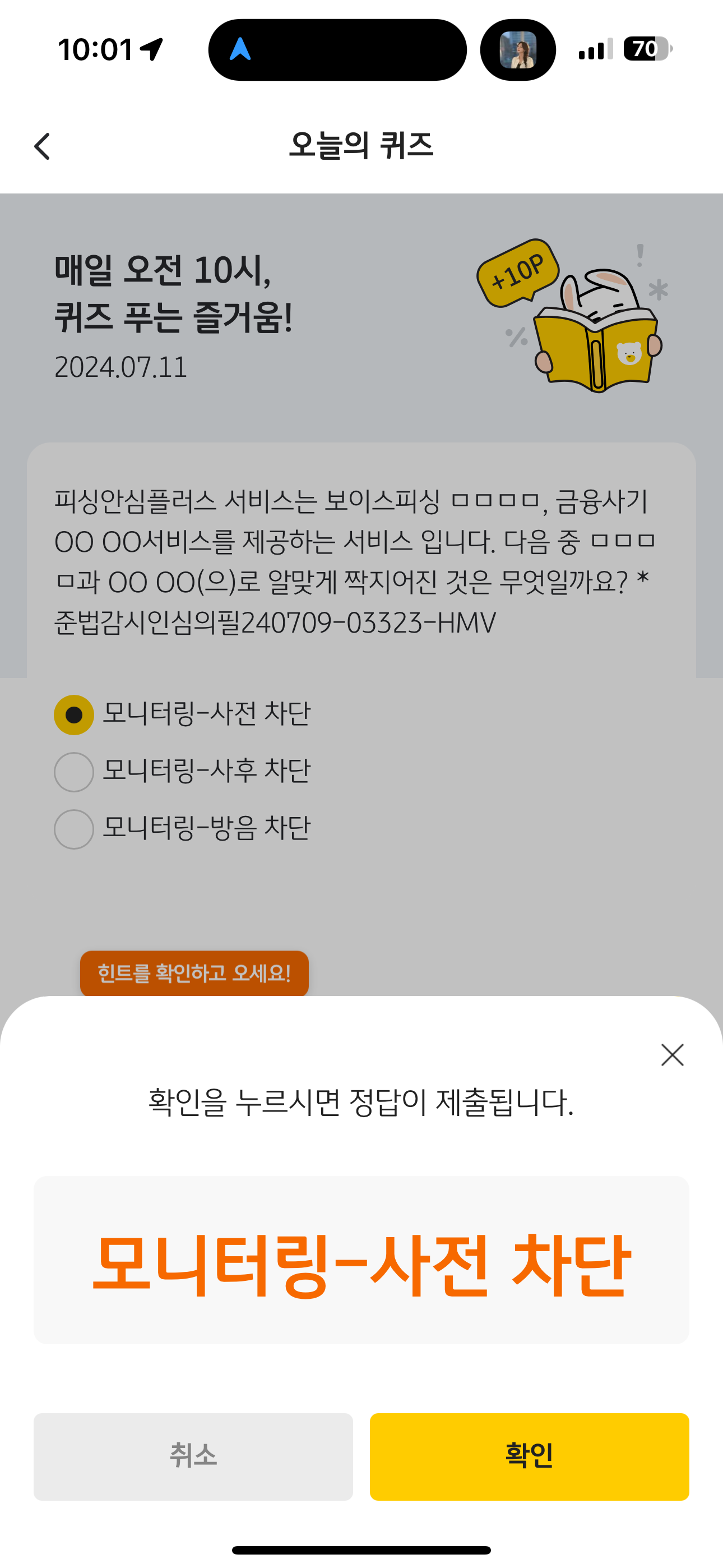 Kb pay 오늘의 퀴즈 정답은 모니터링-사전 차단 입니다