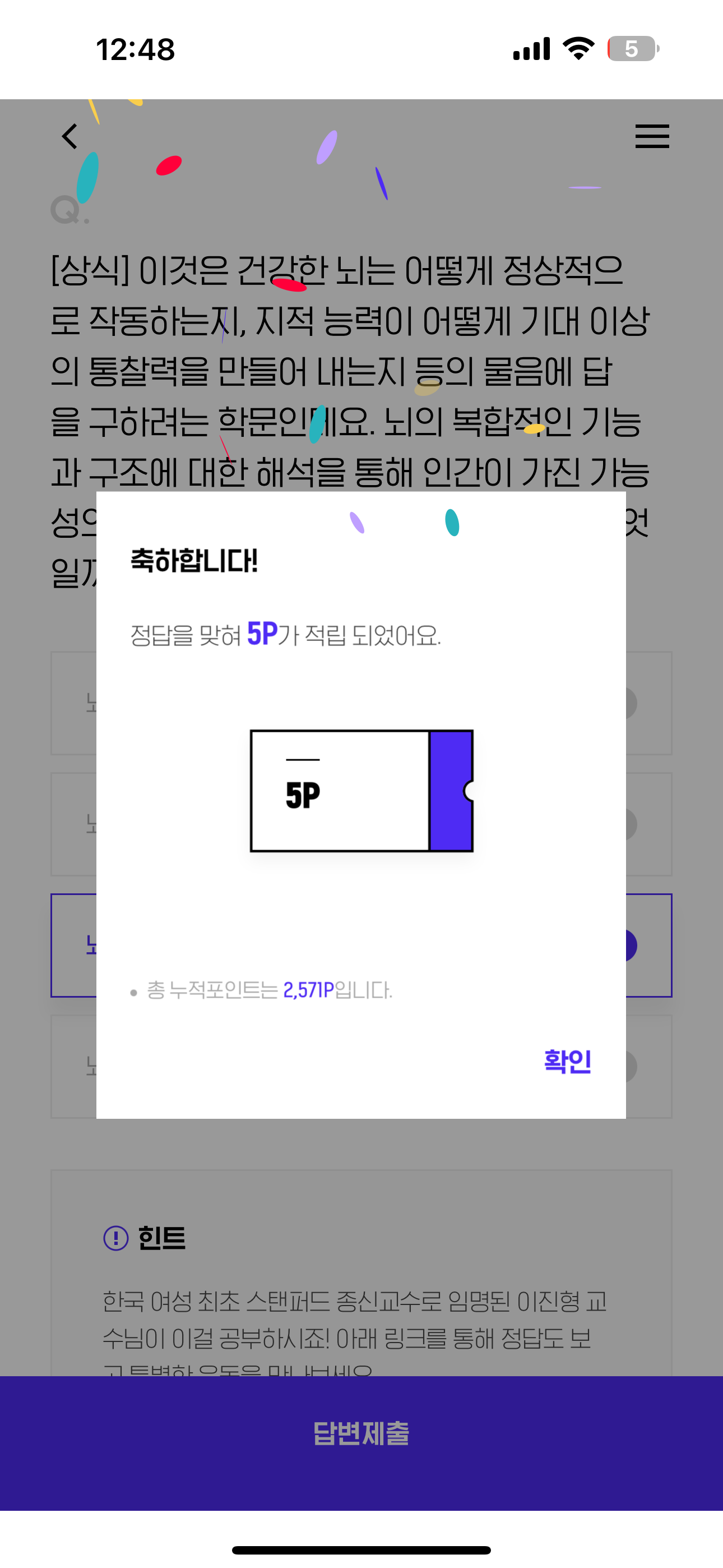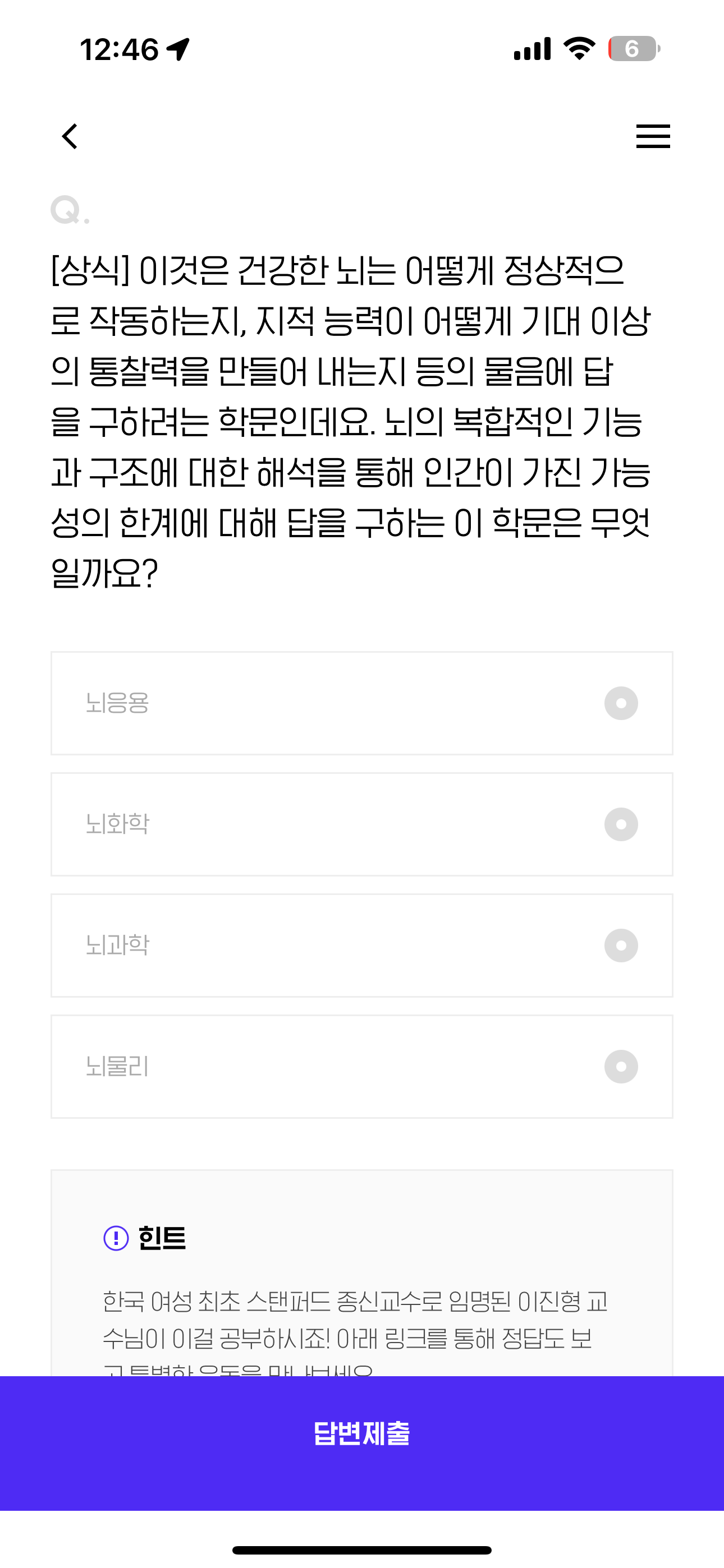 H포인트 퀴즈 정답은 뇌과학 입니다