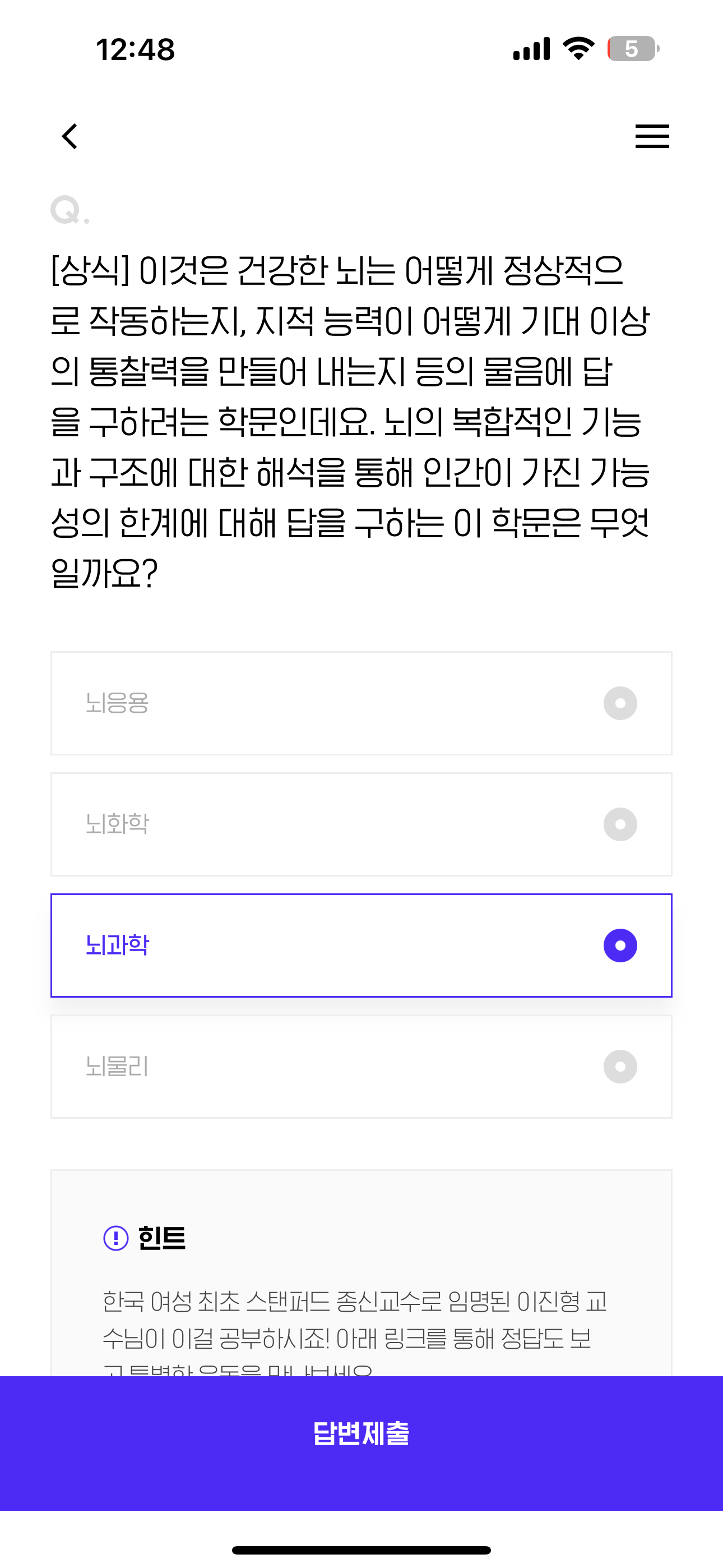 H포인트 퀴즈 정답은 뇌과학 입니다