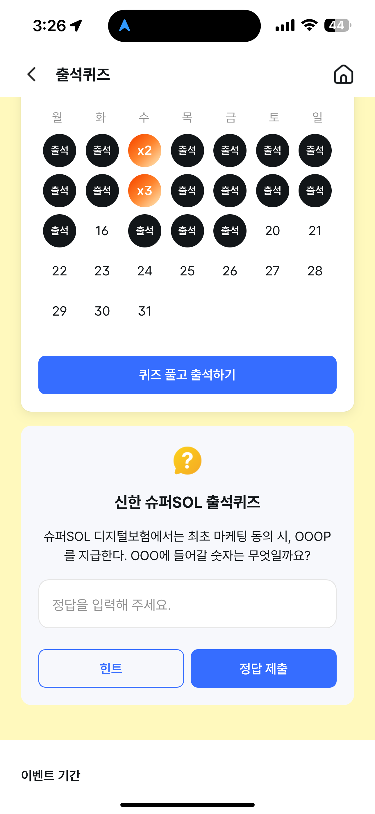 신한 슈퍼SOL 출석퀴즈 7월 20일 정답(슈퍼SOL 디지털보험에서는 최초 마케팅 동의 시, OOOP를 지급한다.)